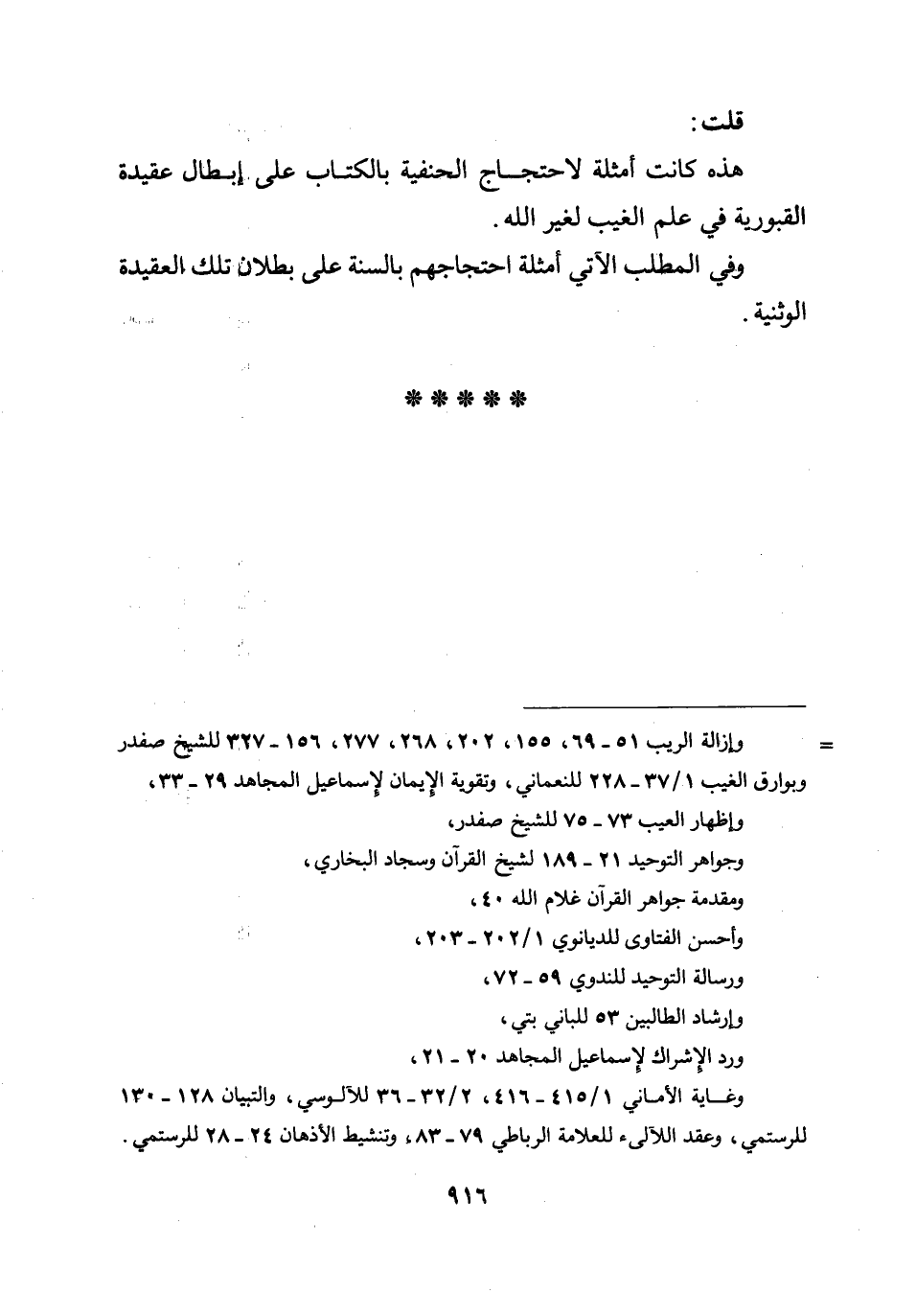 قلت: هذه كانت أمثلة لاحتجاج الحنفية بالكتاب على إبطال عقيدة القبورية في علم الغيب لغير الله.