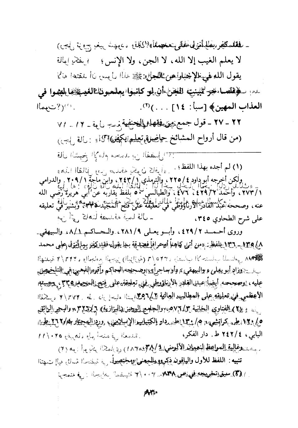 (من قال أرواح المشائخ حاضرة تعلم يكفر) .
