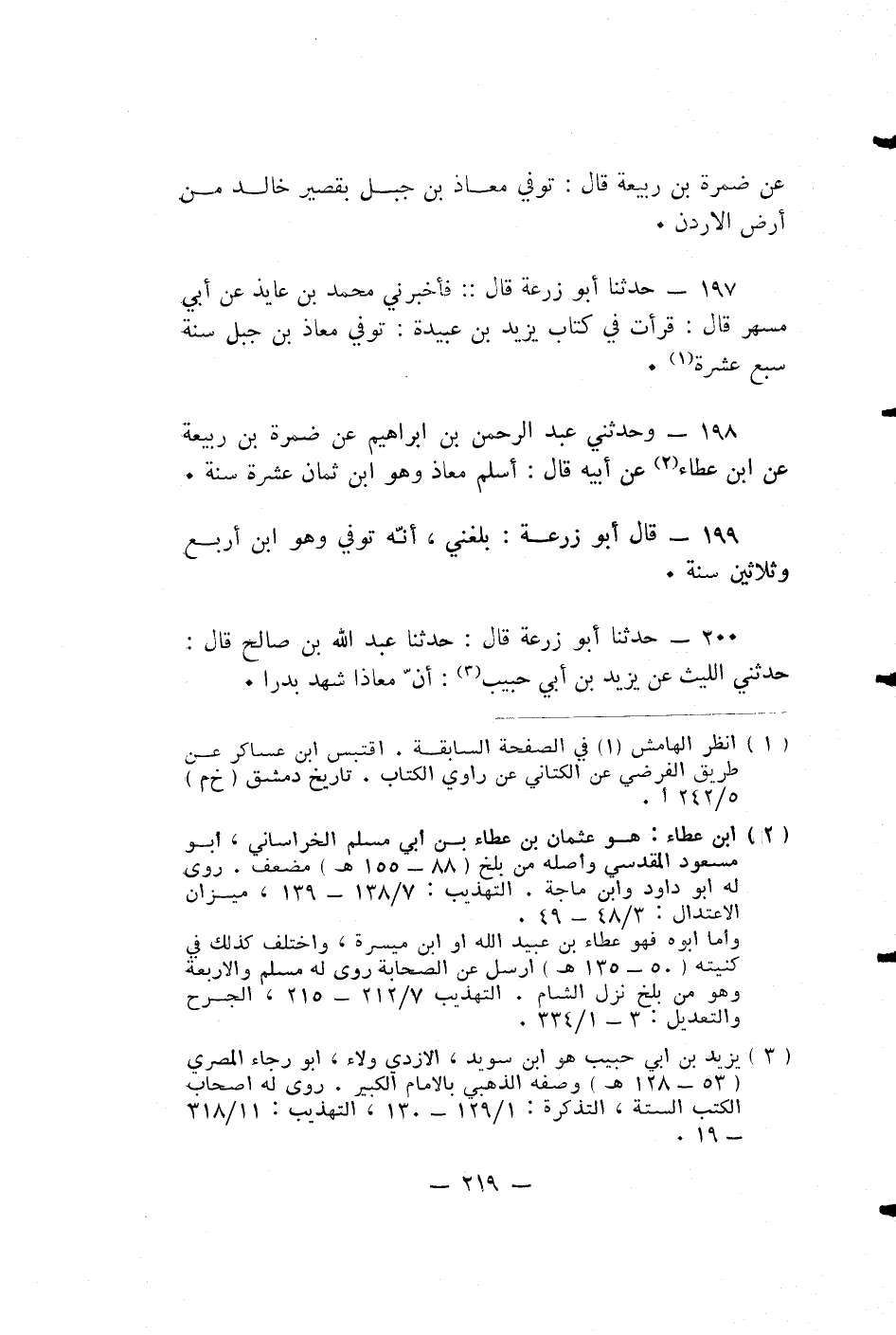 حدثنا أبو زرعة قال: فَأَخْبَرَنِي مُحَمَّدِ بْنِ عَايذٍ عَنْ أَبِي مُسْهِرٍ قَالَ: قَرَأْتُ فِي كِتَابِ يَزِيدَ بْنِ عُبَيْدَةَ: تُوُفِّيَ مُعَاذُ بْنُ جَبَلٍ سَنَةَ سَبْعَ عَشْرَةَ.
