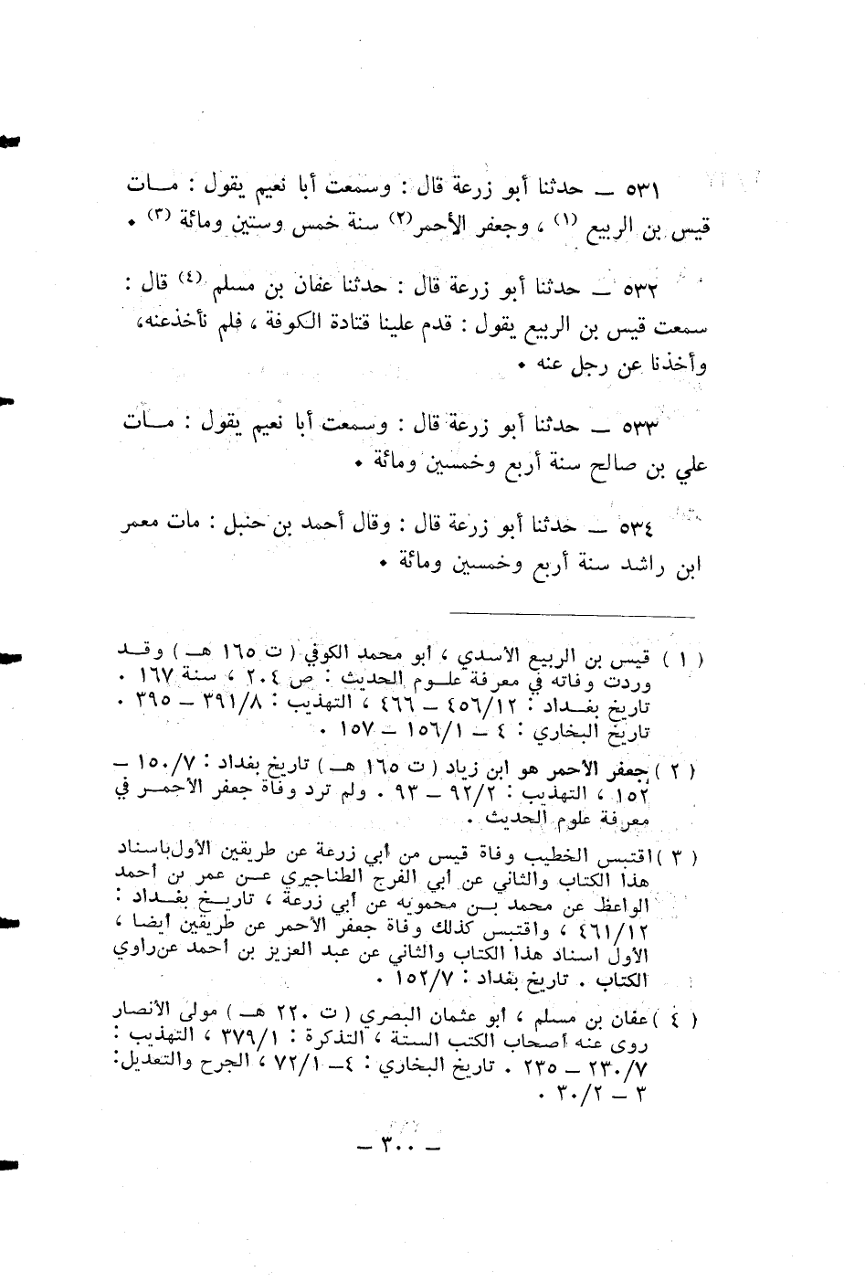 حدثنا أبو زرعة قَالَ: وَسَمِعْتُ أَبَا نُعَيْمٍ يَقُولُ: مَاتَ قَيْسُ بْنُ الرَّبِيعِ، وَجَعْفَرُ الْأَحْمَرُ سَنَةَ خَمْسٍ وَسِتِّينَ وَمِائَةٍ.