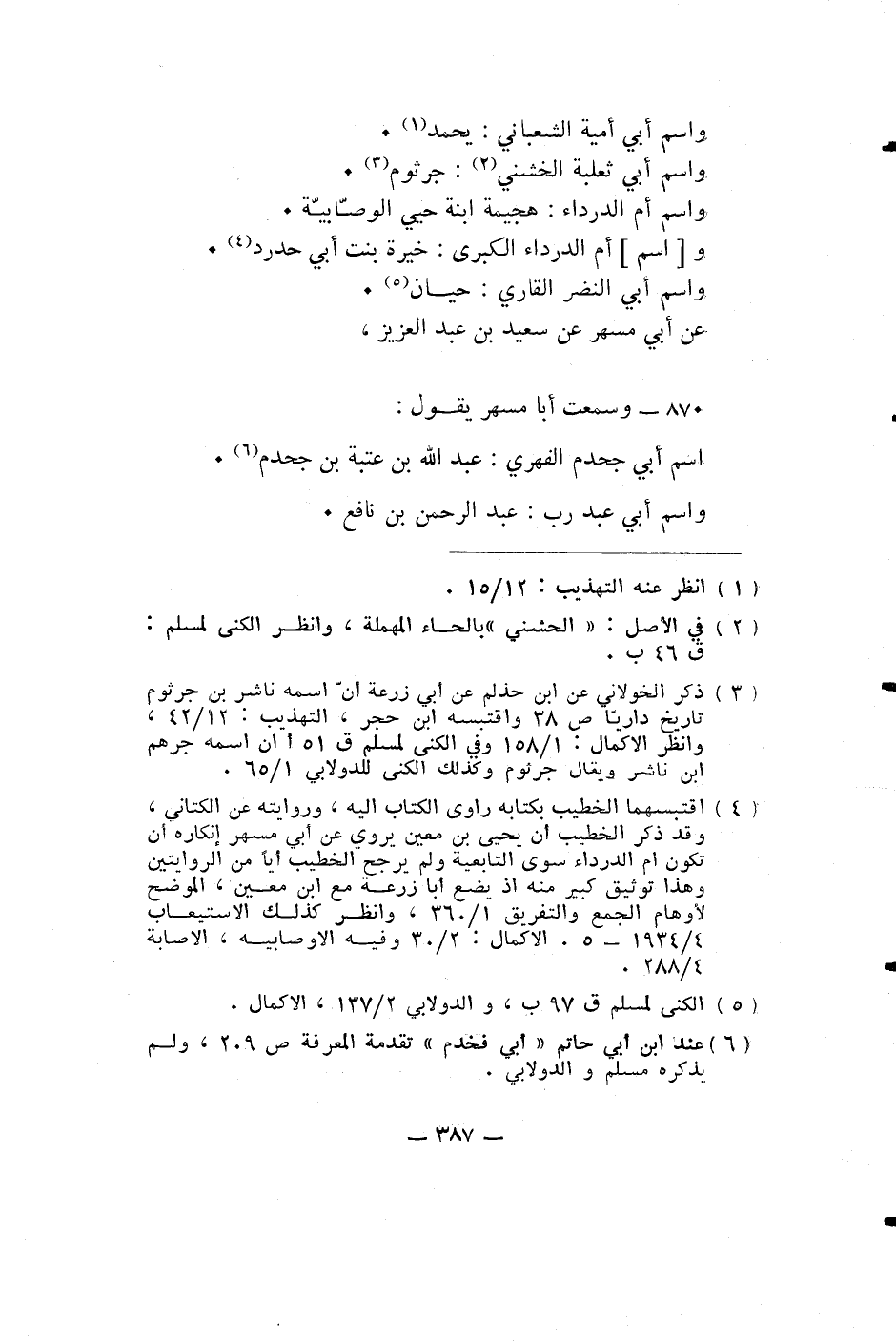 وَاسْمُ أُمِّ الدَّرْدَاءِ الكبرى: خيرة بنت أبي حدود.