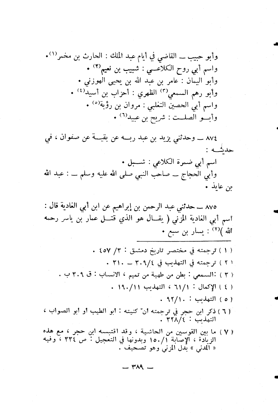حَدَّثَنِي عَبْدُ الرَّحْمَنِ بْنُ إِبْرَاهِيمَ عَنِ ابْنِ أَبِي الْغَادِيَةِ قَالَ: اسْمُ أَبِي الْغَادِيَةِ الْمَزْنِيِّ يُقَالُ هُوَ الَّذِي قَتَلَ عَمَّارَ بْنَ يَاسِرٍ رَحِمَهُ اللَّهُ: يَسَارُ بْنُ سَبْعٍ.