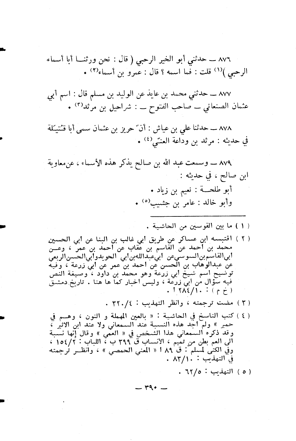 وَسَمِعْتُ عَبْدَ اللَّهِ بْنَ صَالِحٍ يَذْكُرُ هَذِهِ الْأَسْمَاءِ، عَنْ مُعَاوِيَةَ بْنِ صَالِحٍ، فِي حَدِيثِهِ: أَبُو طَلْحَةَ: نُعَيْمِ بْنِ زِيَادٍ.