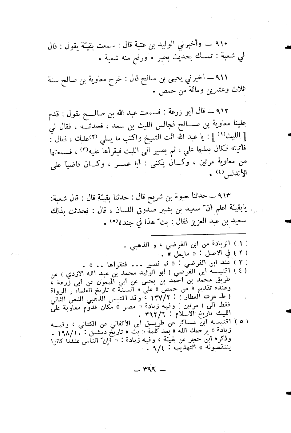 وَأَخْبَرَنِي الْوَلِيدُ بْنُ عُتْبَةَ قال: سَمِعْتُ بَقِيَّةَ يَقُولُ: قَالَ لِي شُعْبَةُ: تَمَسَّكْ بِحَدِيثِ بُحَيْرٍ. وَرَفَعَ مِنْهُ شُعْبَةَ.