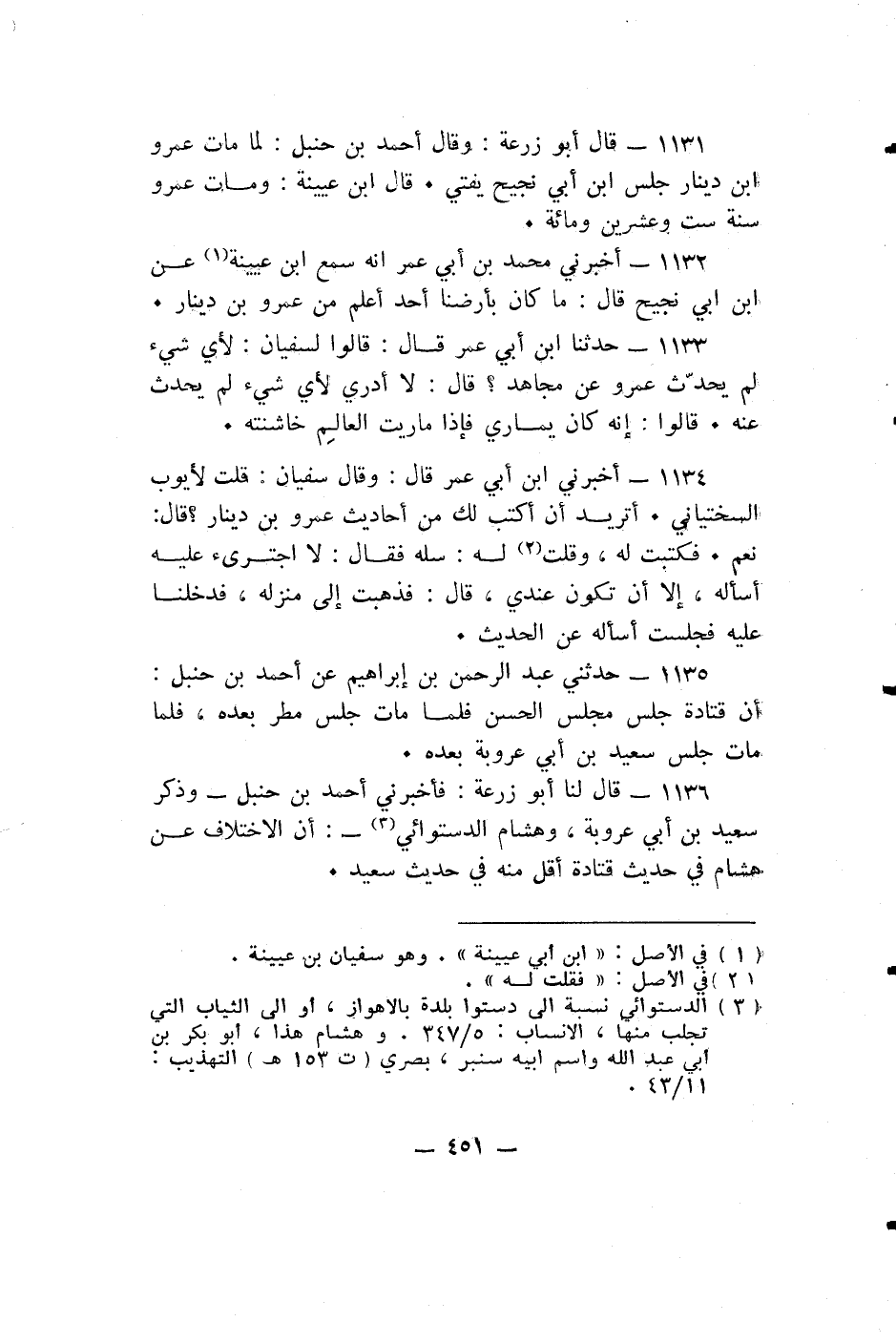 قال لنا أبو زرعة: فَأَخْبَرَنِي أَحْمَدُ بْنُ حَنْبَلٍ - وَذَكَرَ سَعِيدُ بْنُ أَبِي عَرُوبَةَ، وَهِشَامٌ الدِّسْتِوَائِيُّ -: أَنَّ الِاخْتِلَافَ عَنْ هِشَامٍ فِي حَدِيثِ قَتَادَةَ أَقَلُّ مِنْهُ في حديث سعيد.