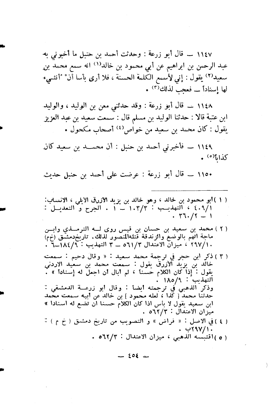 قال أبو زرعة: عَرَضْتُ عَلَى أَحْمَدَ بْنِ حَنْبَلٍ حَدِيثَ