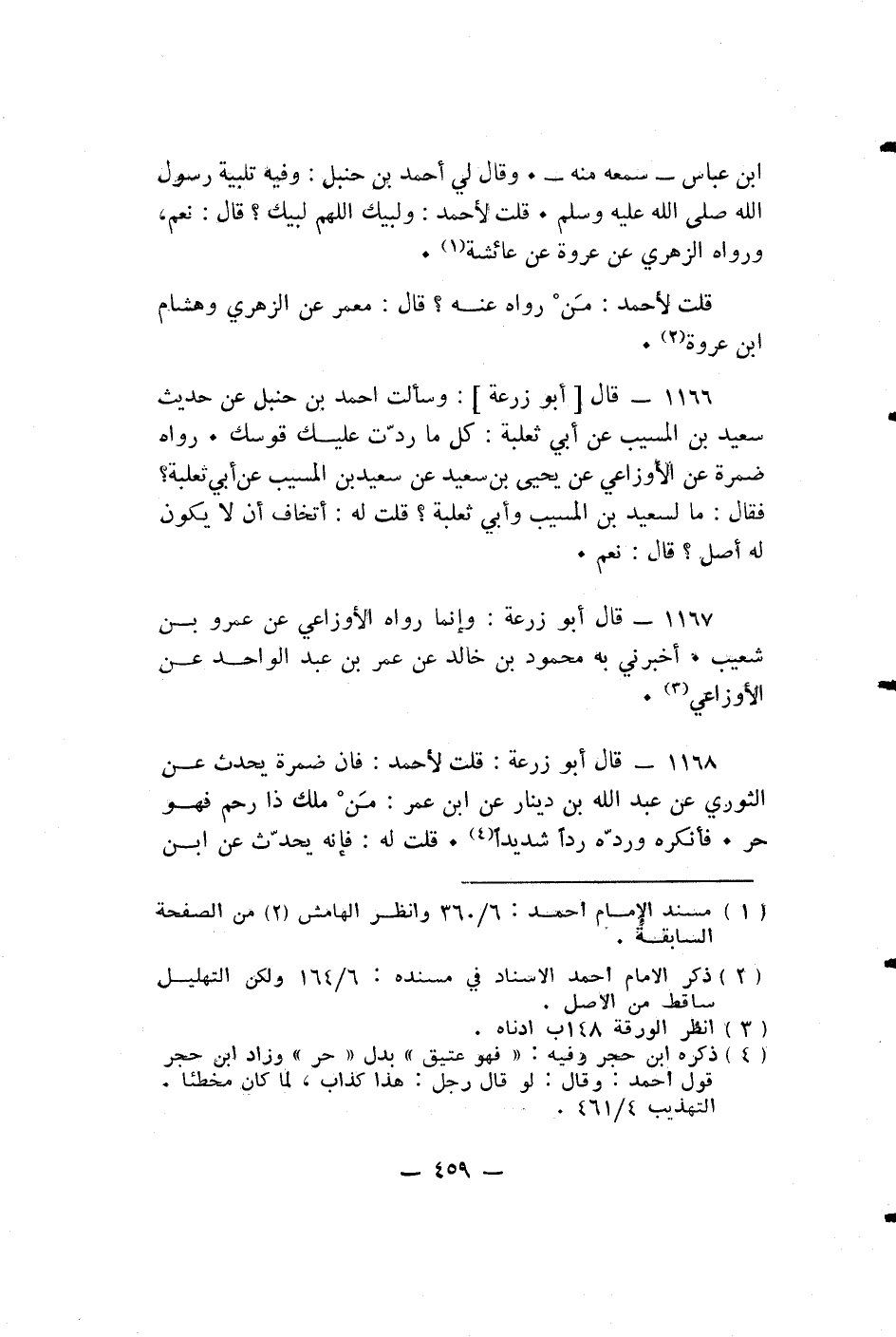 قال أبو زرعة: وَسَأَلْتُ أَحْمَدَ بْنَ حَنْبَلٍ عَنْ حَدِيثِ سَعِيدِ بْنِ الْمُسَيِّبِ عَنْ أَبِي ثَعْلَبَةَ: كُلْ مَا رَدَّتْ عَلَيْكَ قَوْسُكَ. رَوَاهُ ضَمْرَةُ عَنِ الْأَوْزَاعِيِّ عَنْ يَحْيَى بْنِ سَعِيدٍ عَنْ سَعِيدِ بْنِ الْمُسَيِّبِ عَنْ أَبِي ثَعْلَبَةَ؟ فَقَالَ: مَا لِسَعِيدِ بْنِ الْمُسَيِّبِ وَأَبِي ثَعْلَبَةَ؟ قُلْتُ لَهُ: أَتَخَافُ أَنْ لَا يَكُونَ لَهُ أَصْلٌ؟ قَالَ: نَعَمْ.
