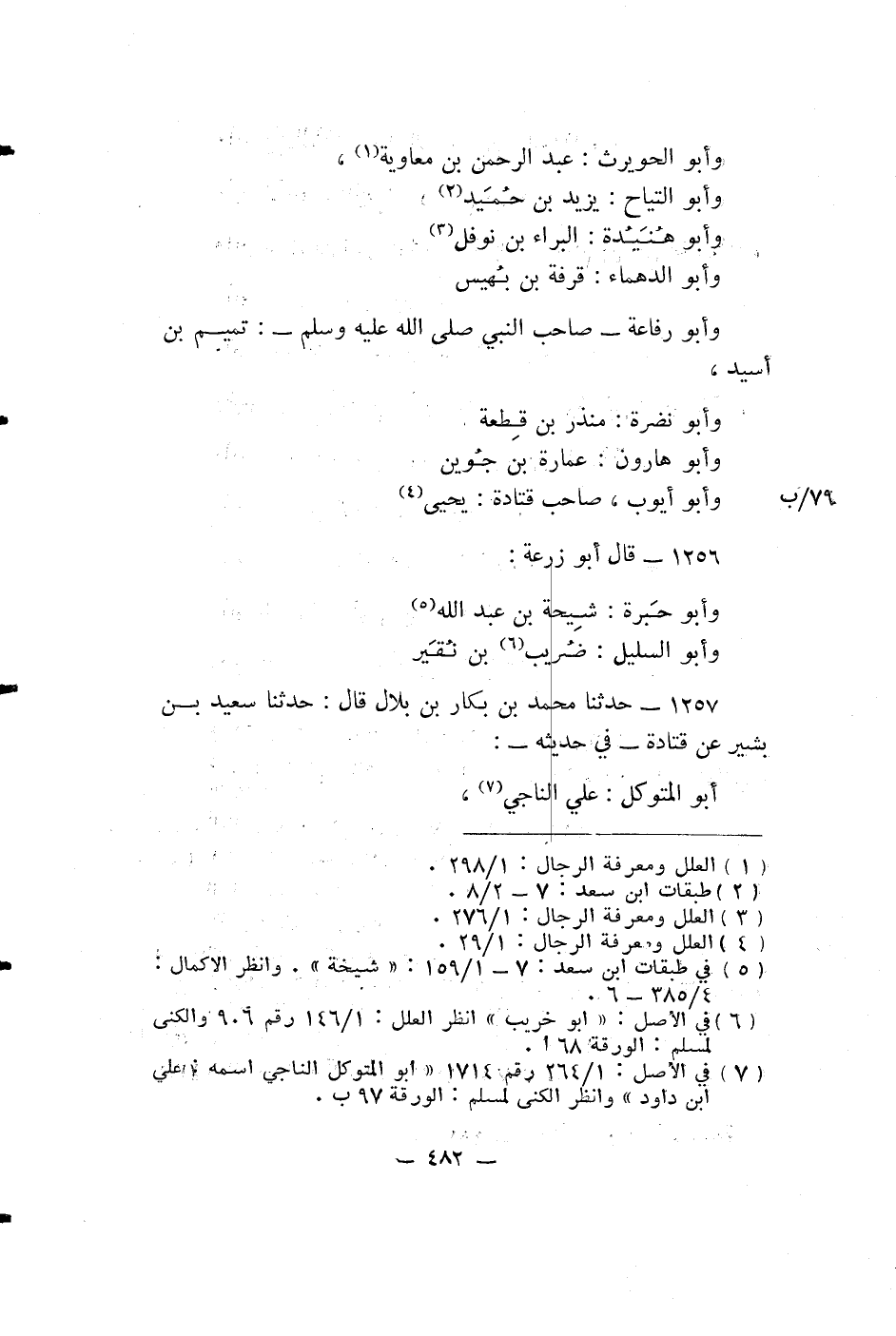 وَأَبُو الْحُوَيْرِثِ: عَبْدُ الرَّحْمَنِ بْنُ مُعَاوِيَةَ، وَأَبُو التَّيَّاحِ، يَزِيدُ بْنُ حُمَيْدٍ، وَأَبُو هُنَيْدَةَ: الْبَرَّاءُ بْنُ نَوْفَلٍ، وَأَبُو الدَّهْمَاءِ: قِرْفَةُ بْنُ بُهَيْسٍ، وَأَبُو رِفَاعَةَ - صَاحِبُ النَّبِيِّ