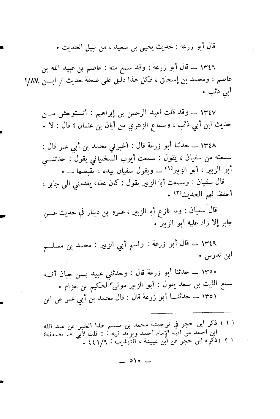 حدثنا أبو زرعة قال: أَخْبَرَنِي مُحَمَّدُ بْنُ أَبِي عُمَرَ قال: سَمِعْتُهُ مِنْ سُفْيَانَ، يَقُولُ: سَمِعْتُ أَيُّوبَ السِّخْتِيَانِيَّ يَقُولُ: حَدَّثَنِي أَبُو الزُّبَيْرِ، أَبُو الزُّبَيْرِ - وَيَقُولُ سُفْيَانُ بِيَدِهِ، يَقْبِضُهَا -.
