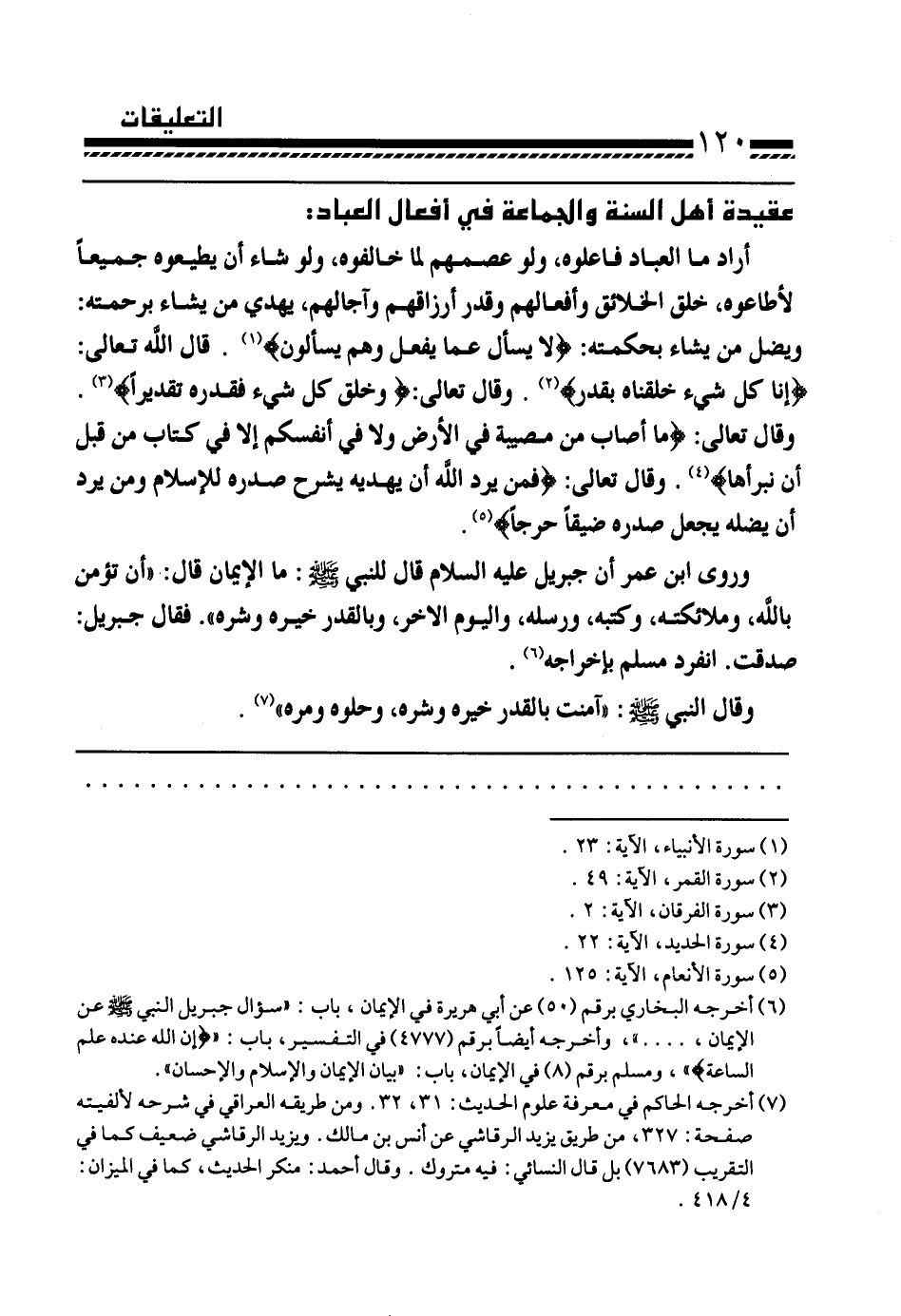 عقيدة أهل السنة والجماعة في أفعال العباد: