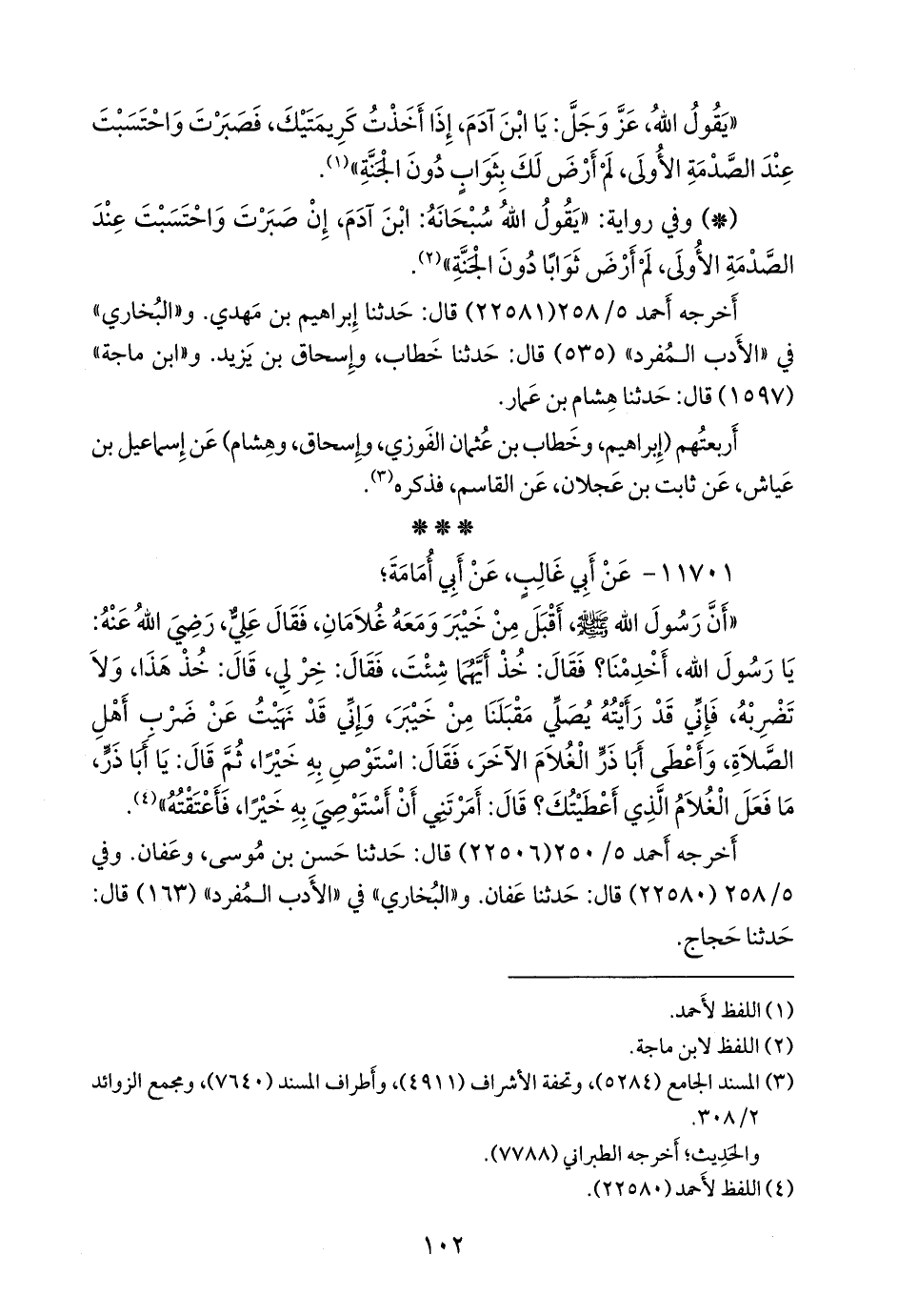 ثلاثتهم (حسن، وعفان بن مسلم، وحجاج بن مِنهال) عن حماد بن سلمة، قال: أخبرنا أَبو غالب (¬٢)، فذكره (¬٣).