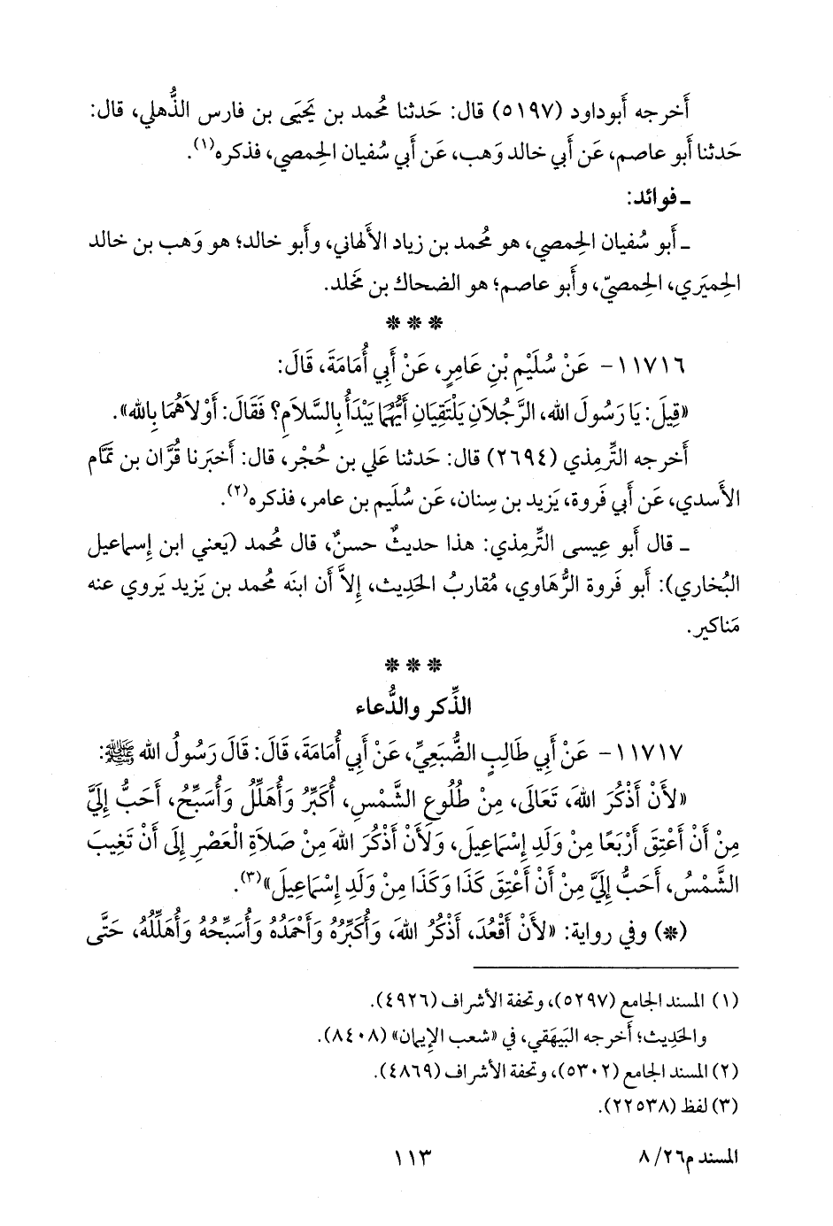 ١١٧١٦ - عن سليم بن عامر، عن أَبي أُمامة، قال: