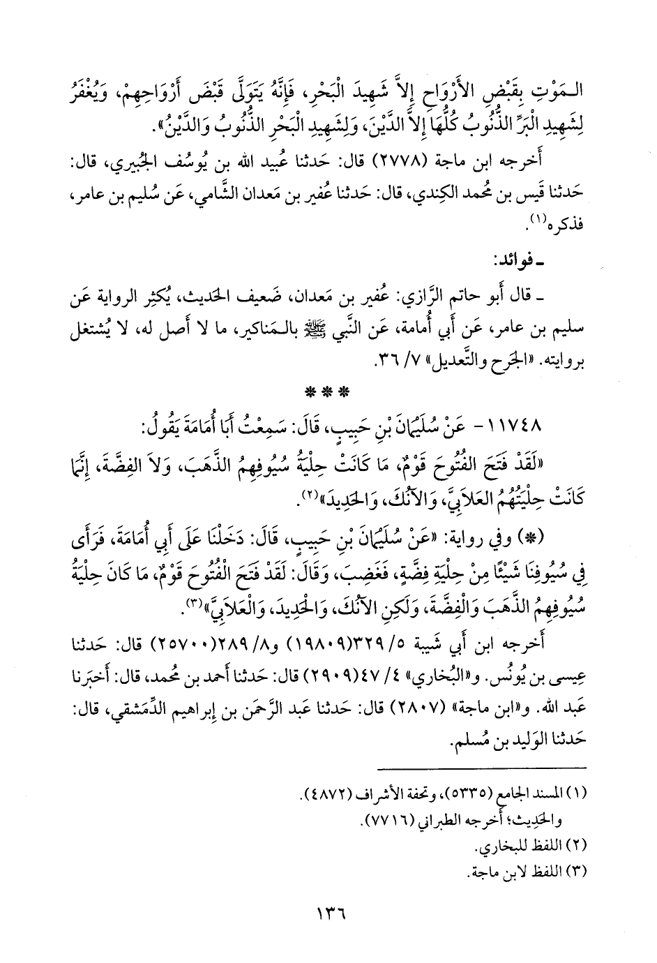 ثلاثتهم (عيسى، وعبد الله بن المبارك، والوليد) عن عبد الرَّحمَن بن عَمرو الأَوزاعي، قال: سمعت سليمان بن حبيب، فذكره (¬٣).
