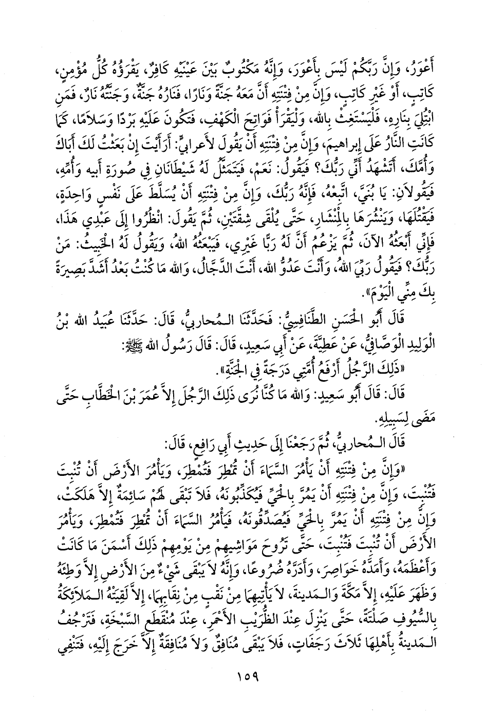 قال أَبو الحسن الطنافسي: فحدثنا المحاربي، قال: حدثنا عُبيد الله بن الوليد الوصافي، عن عطية، عن أبي سعيد، قال: قال رسول الله صَلى الله عَليه وسَلم: