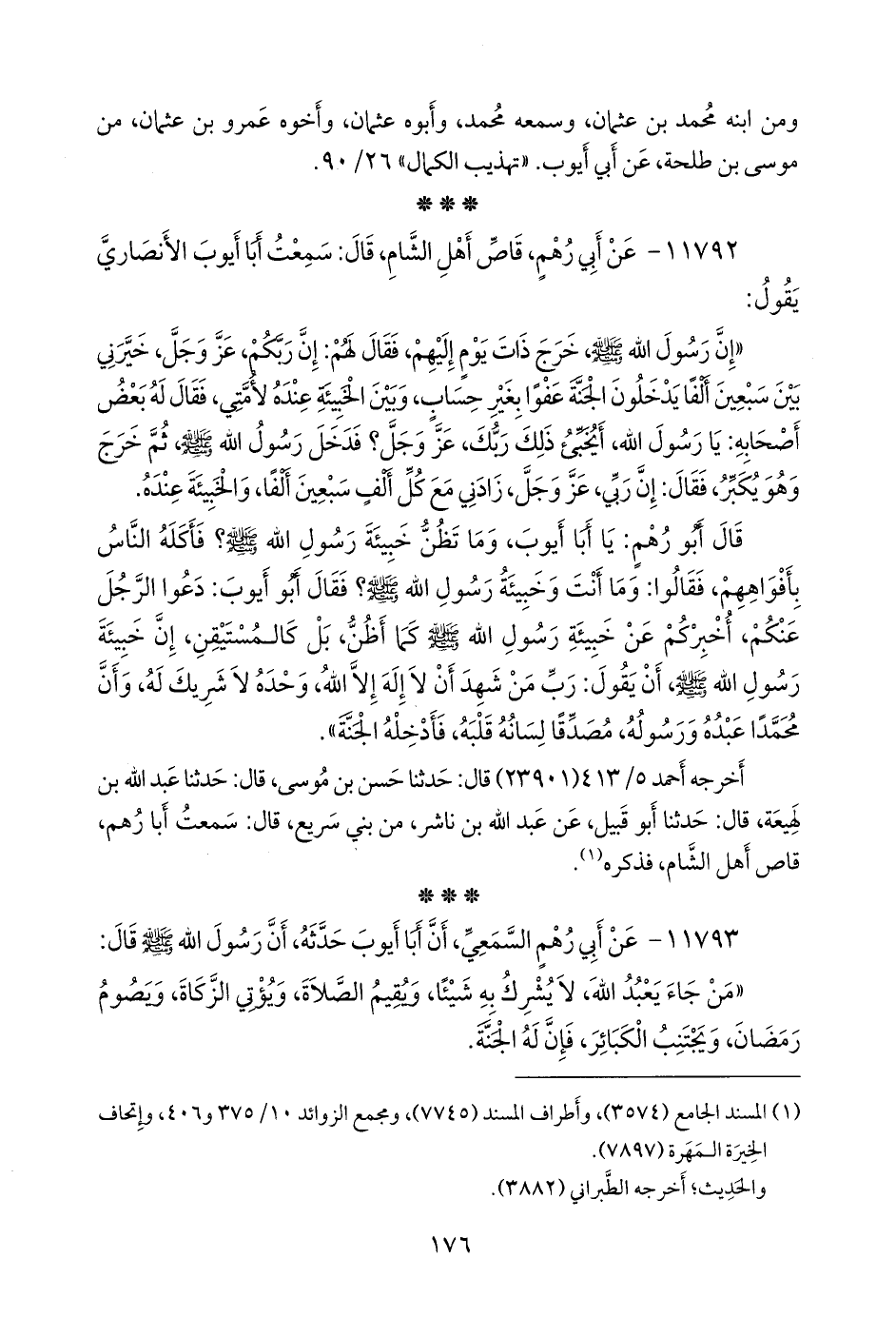١١٧٩٢ - عن أبي رهم، قاص أهل الشام، قال: سمعت أبا أيوب الأنصاري يقول: