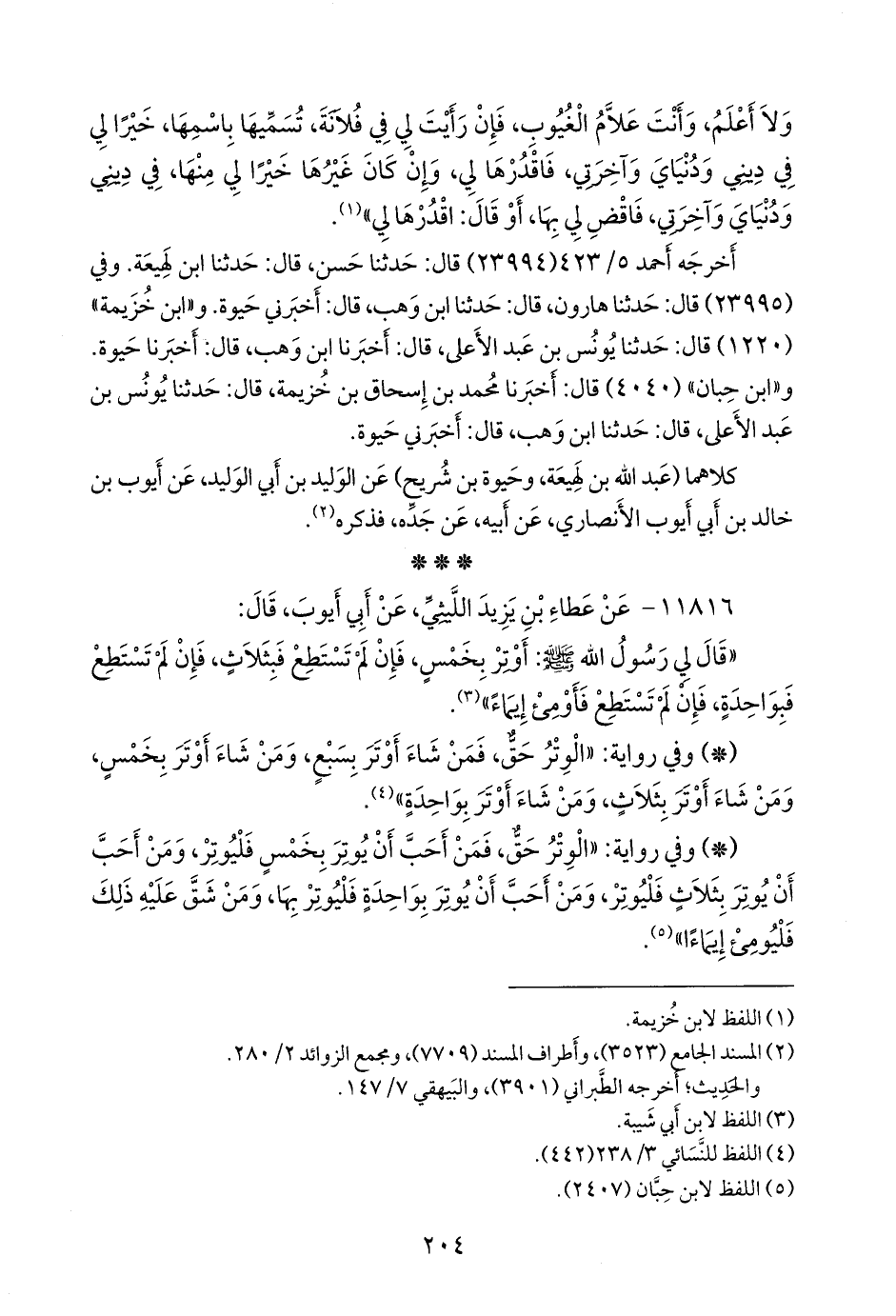 - وفي رواية: «الوتر حق، فمن أحب أن يوتر بخمس فليوتر، ومن أحب أن يوتر بثلاث فليوتر، ومن أحب أن يوتر بواحدة فليوتر بها، ومن شق عليه ذلك فليومئ إيماءا» (¬٣).