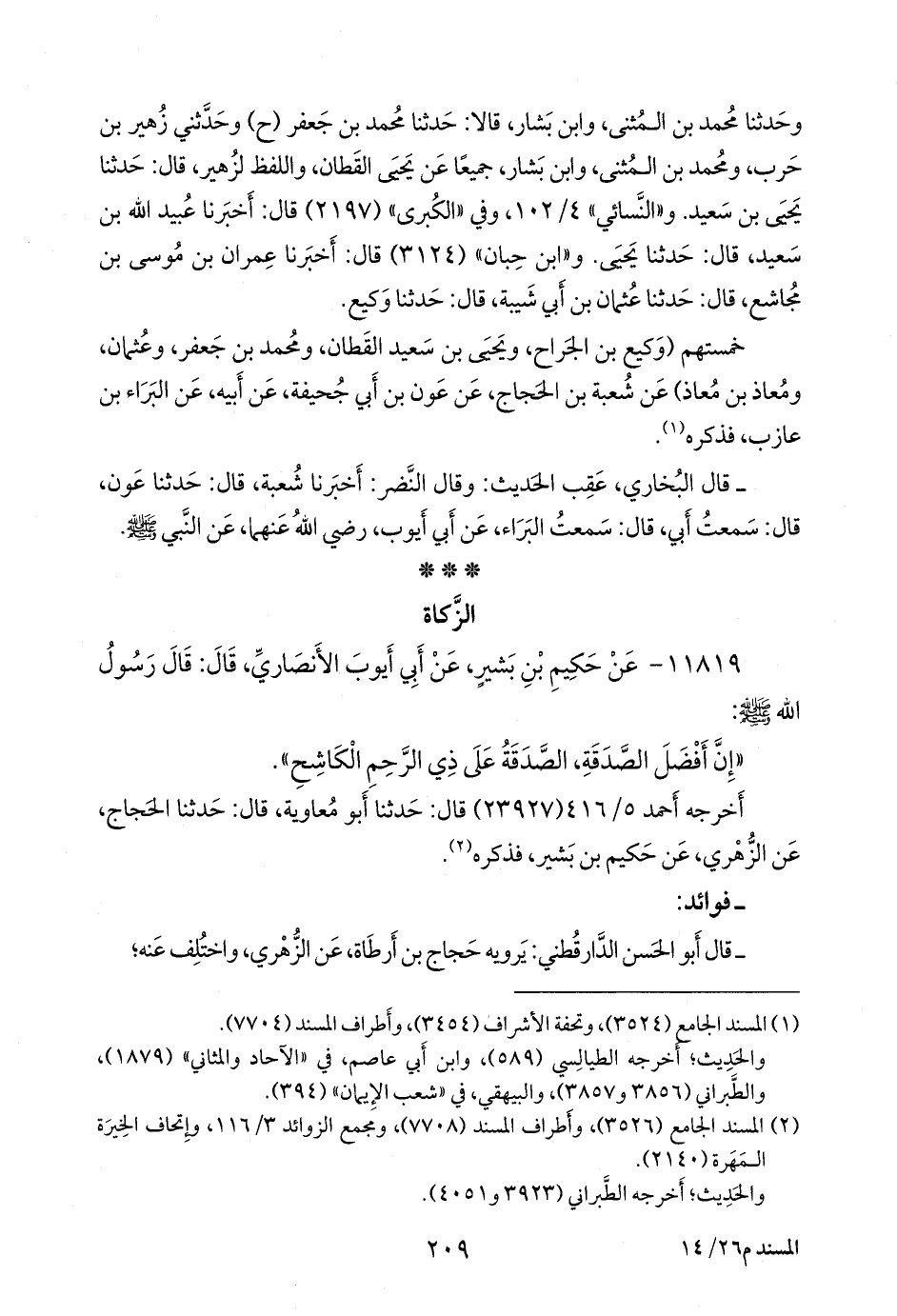 (¬١) المسند الجامع (٣٥٢٦)، وأطراف المسند (٧٧٠٨)، ومَجمَع الزوائد ٣/ ١١٦، وإتحاف الخِيرَة المَهَرة (٢١٤٠).