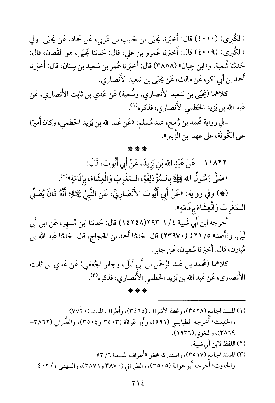 - وفي رواية: «عن أَبي أَيوب الأَنصاري، عن النبي صَلى الله عَليه وسَلم؛ أنه كان يصلي المغرب والعشاء بإقامة».