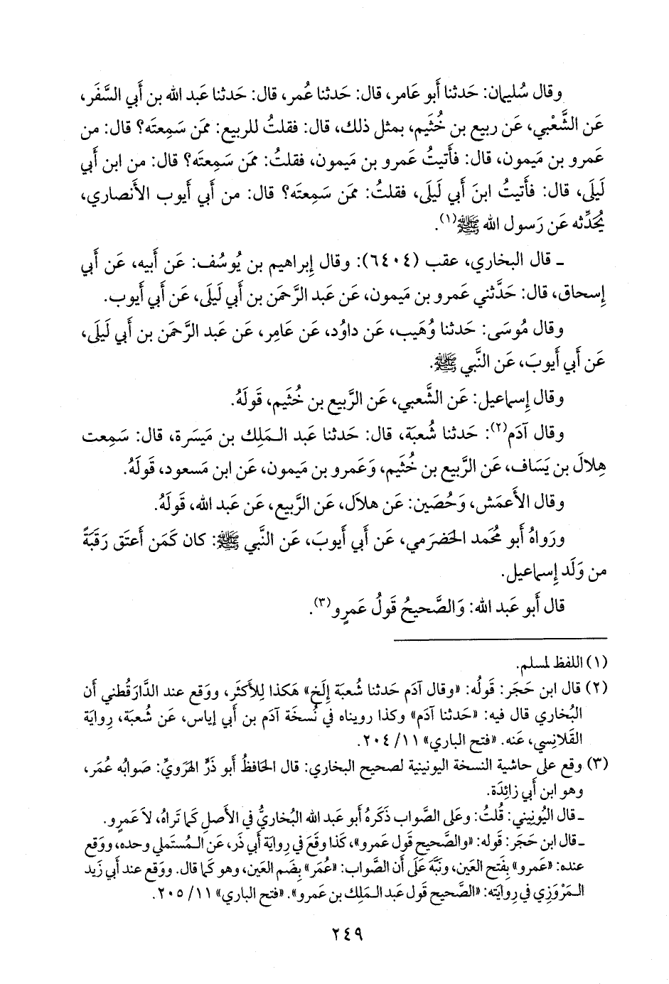 - قال اليونيني: قلت: وعلى الصواب ذكره أَبو عبد الله البخاري في الأصل كما تراه، لا عَمرو.