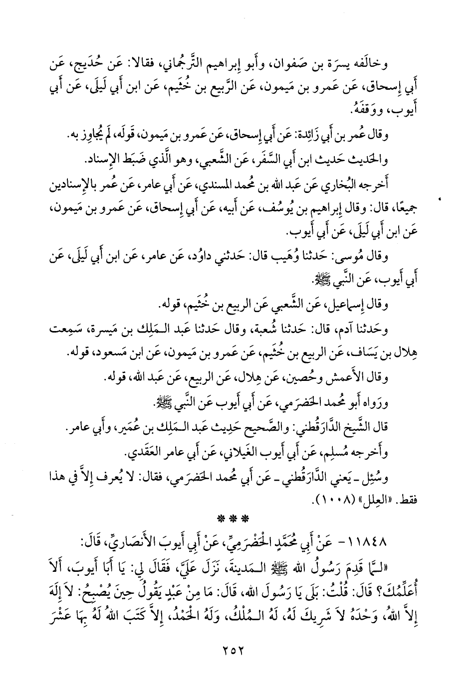 - قال البخاري ٨/ ١٠٧: رواه أَبو محمد الحضرمي، عن أَبي أَيوب، عن النبي صَلى الله عَليه وسَلم؛ «كان كمن أعتق رقبة من ولد إسماعيل».