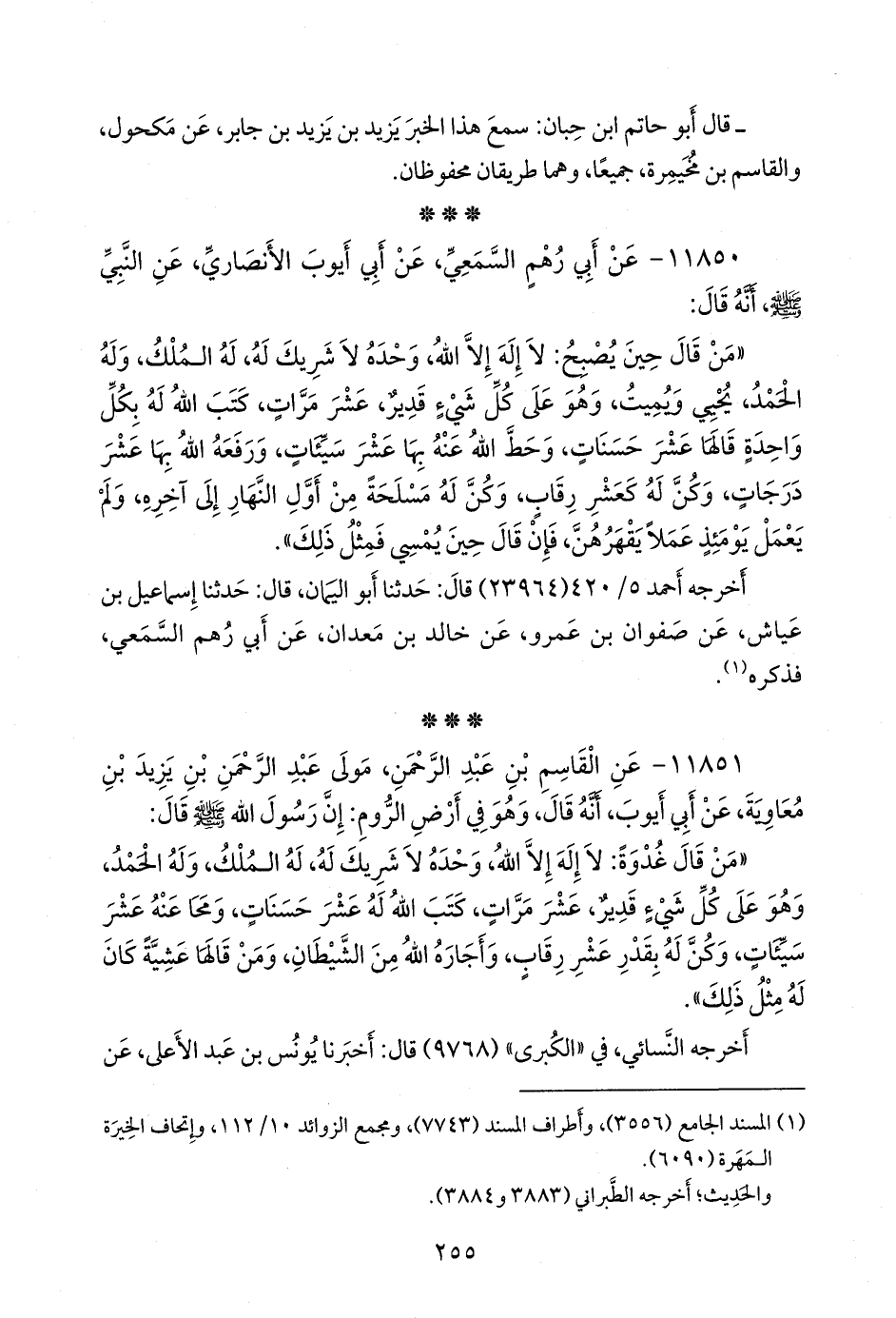١١٨٥٠ - عن أبي رهم السمعي، عن أَبي أَيوب الأَنصاري، عن النبي صَلى الله عَليه وسَلم أنه قال: