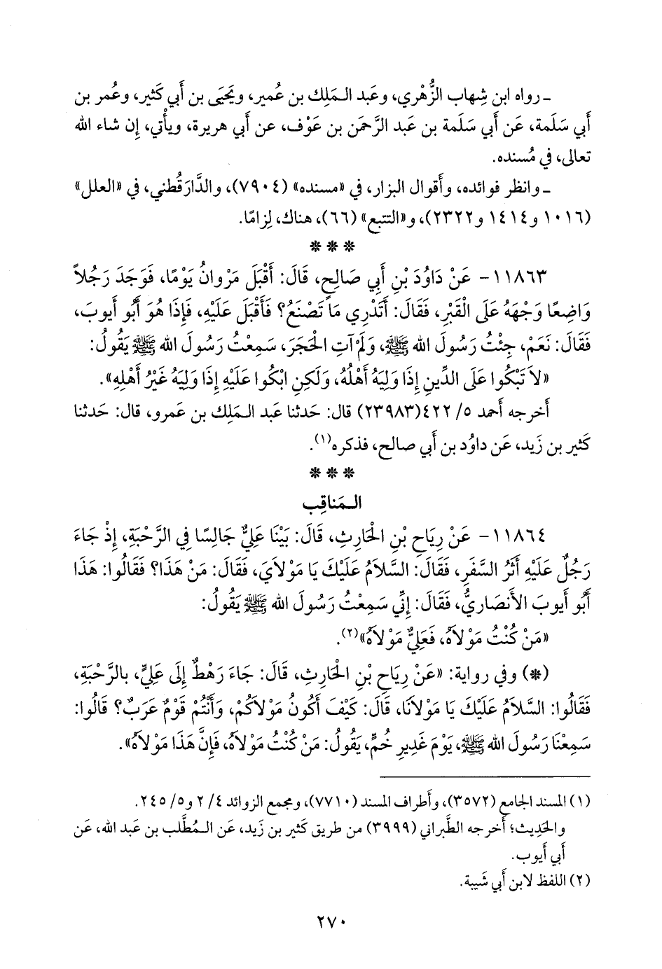 ١١٨٦٤ - عن رياح بن الحارث، قال: بينا علي جالسا في الرحبة، إذ جاء رجل عليه أثر السفر، فقال: السلام عليك يا مولاي، فقال: من هذا؟ فقالوا: هذا أَبو أيوب الأَنصاري، فقال: إني سمعت رسول الله صَلى الله عَليه وسَلم يقول: