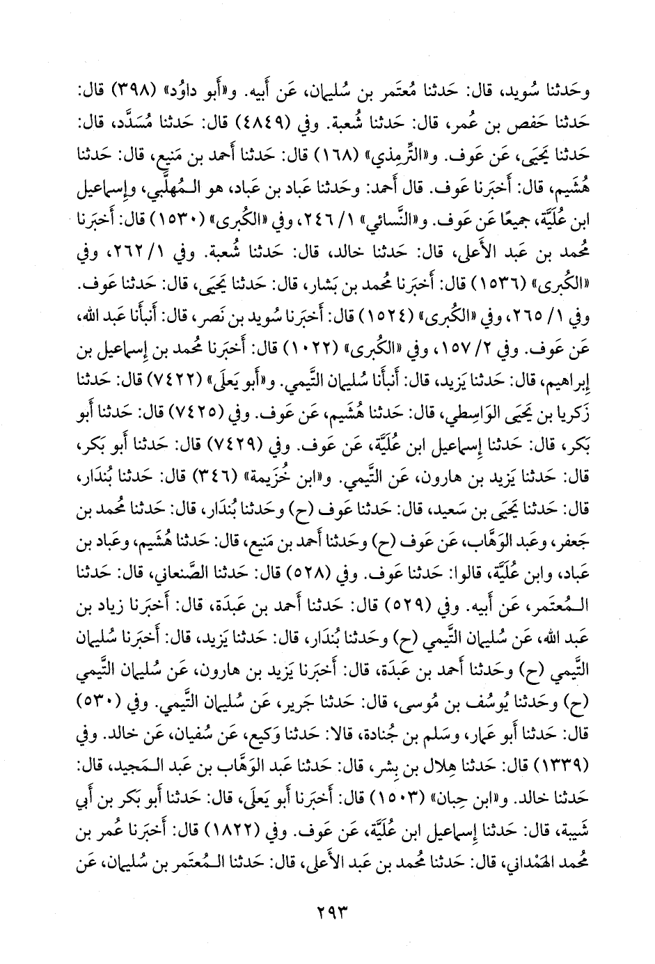وفي (٥٣٠) قال: حدثنا أَبو عمار، وسَلْم بن جُنادة، قالا: حدثنا وكيع، عن سفيان، عن خالد. وفي (١٣٣٩) قال: حدثنا هلال بن بشر, قال: حدثنا عبد الوَهَّاب بن عبد المجيد, قال: حدثنا خالد. و «ابن حِبَّان» (١٥٠٣) قال: أخبرنا أَبو يَعلى، قال: حدثنا أَبو بكر بن أبي شيبة، قال: حدثنا إسماعيل ابن عُلَية، عن عوف. وفي (١٨٢٢) قال: أخبرنا عمر بن محمد الهمداني، قال: حدثنا محمد بن عبد الأعلى، قال: حدثنا المُعتَمِر بن سليمان، عن
