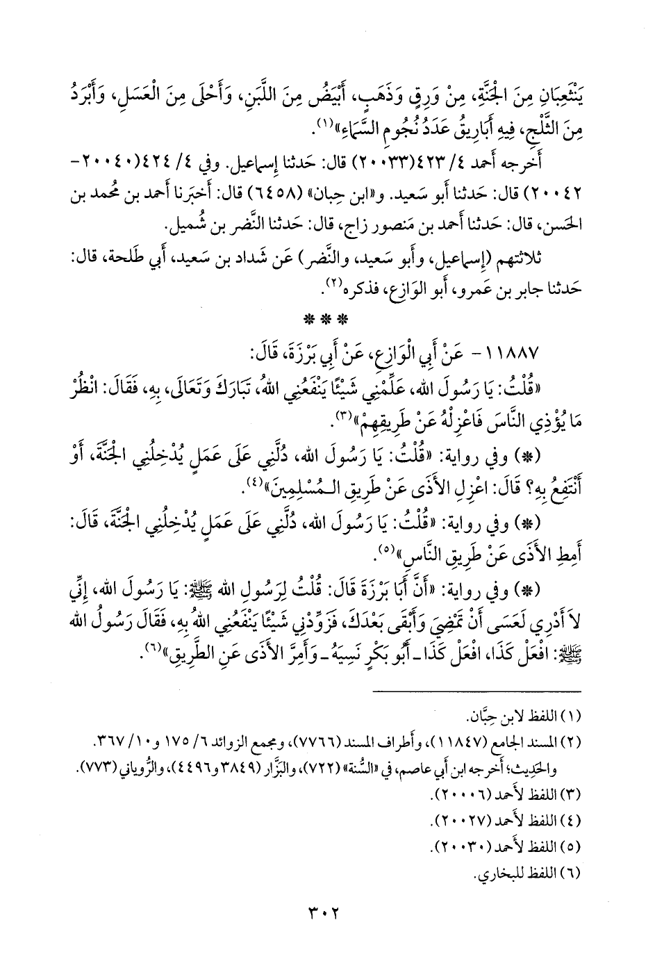 - وفي رواية: «أن أبا بَرزة قال: قلت لرسول الله صَلى الله عَليه وسَلم: يا رسول الله، إني لا أدري لعسى أن تمضي وأبقى بعدك، فزودني شيئًا ينفعني الله به، فقال رسول الله صَلى الله عَليه وسَلم: افعل كذا، افعل كذا ـ أَبو بكر نسيه، وأمر الأذى عن الطريق» (¬٤).