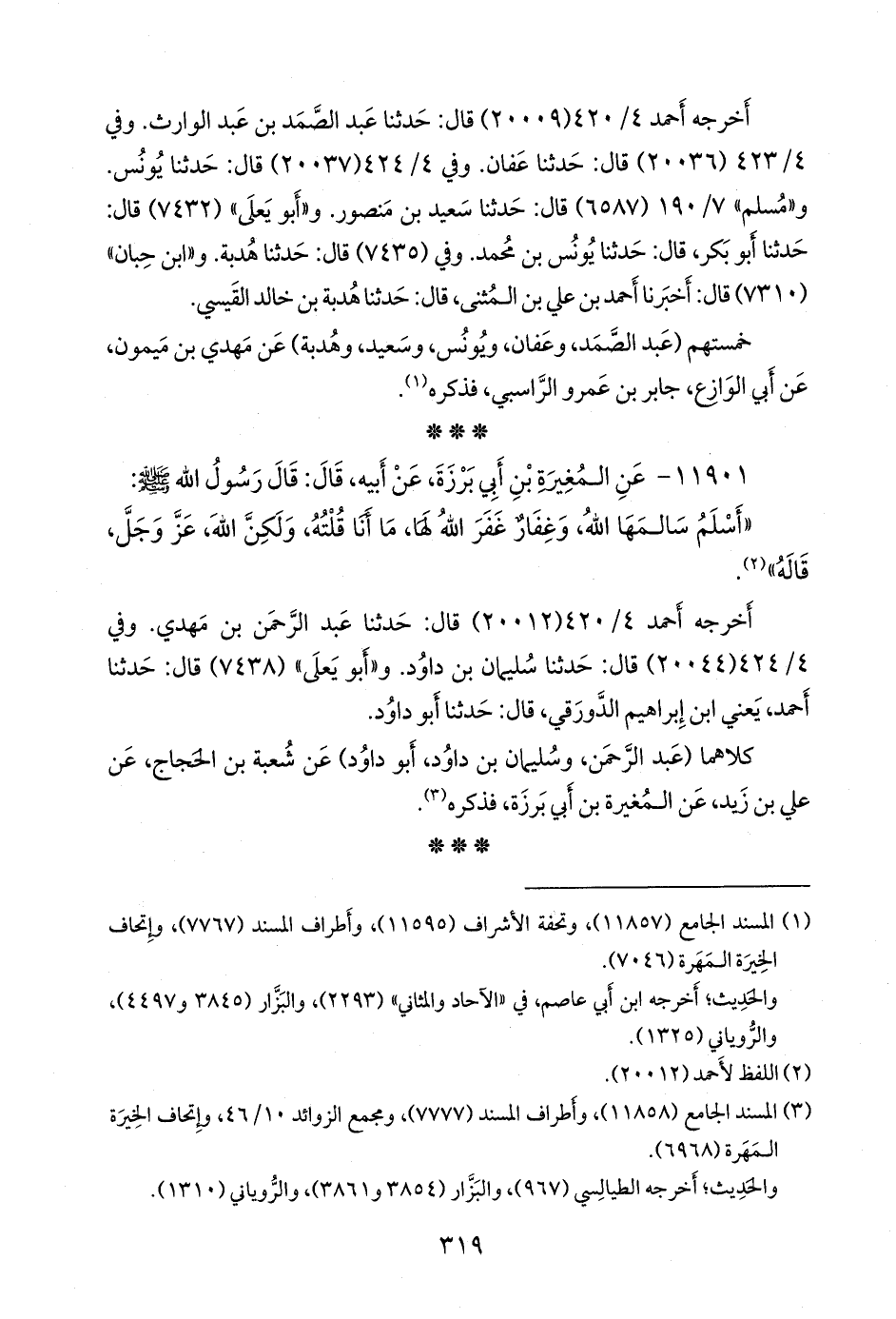 (¬٢) المسند الجامع (١١٨٥٨)، وأطراف المسند (٧٧٧٧)، ومَجمَع الزوائد ١٠/ ٤٦، وإتحاف الخِيرَة المَهَرة (٦٩٦٨).
