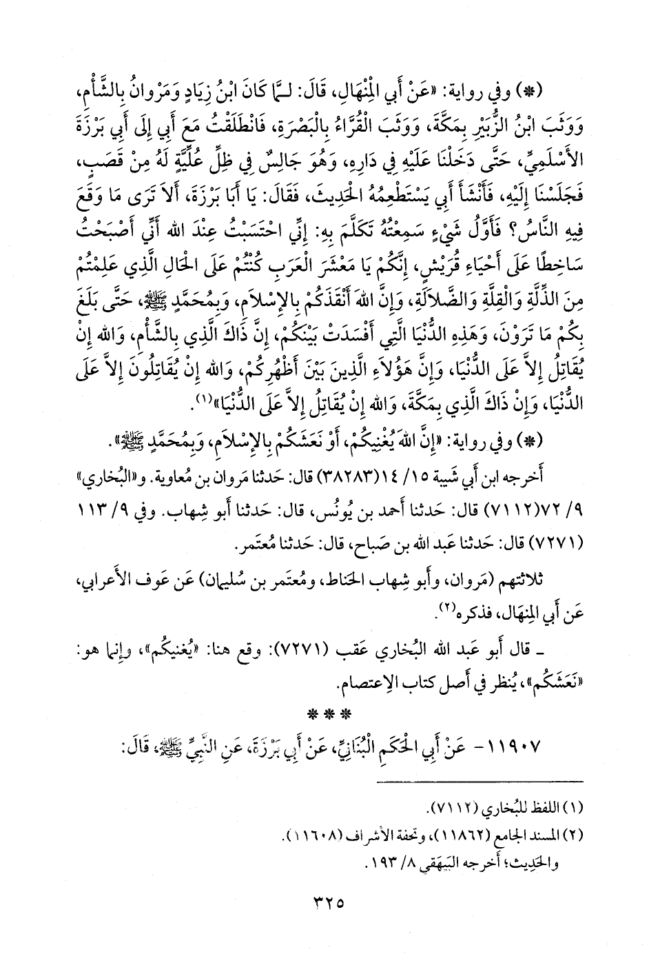- في رواية يونس: «عن علي بن الحكم، عن أبي بَرزة الأسلمي، قال أَبو الأشهب: لا أعلمه إلا عن النبي صَلى الله عَليه وسَلم».