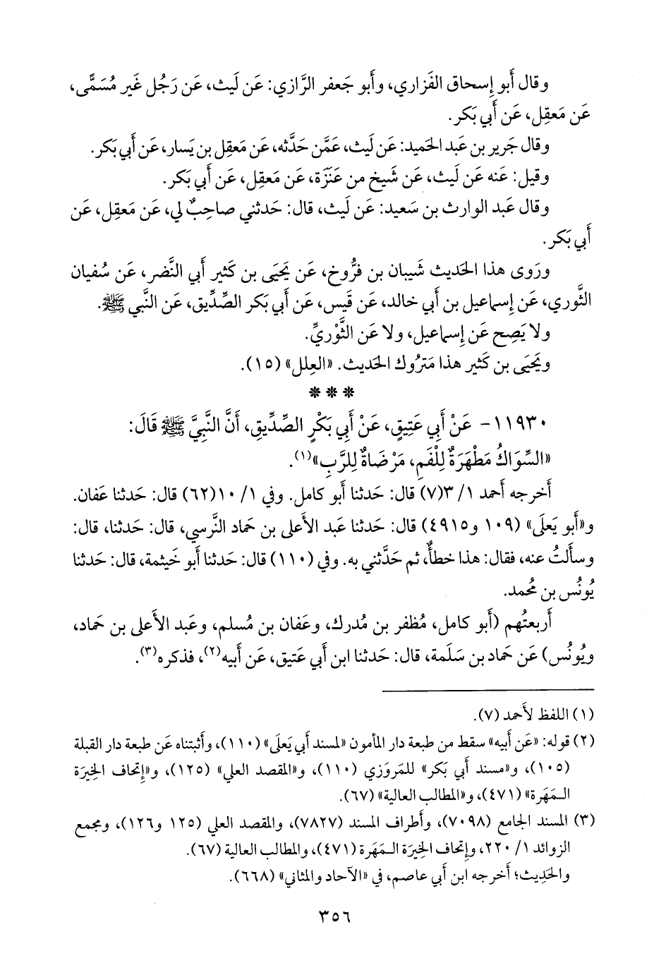 (¬٣) المسند الجامع (٧٠٩٨)، وأطراف المسند (٧٨٢٧)، والمقصد العَلي (١٢٥ و ١٢٦)، ومَجمَع الزوائد ١/ ٢٢٠، وإتحاف الخِيرَة المَهَرة (٤٧١)، والمطالب العالية (٦٧).