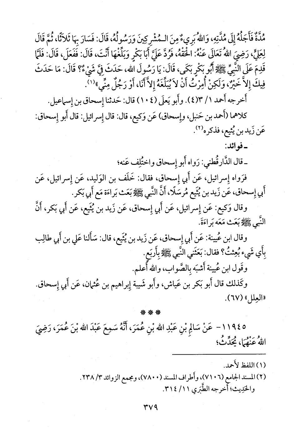 - رواه يونس بن أَبي إِسحاق، عن أَبي إِسحاق، عن زيد بن يُثيع، عن علي بن أَبي طالب، عن النبي صَلى الله عَليه وسَلم وسلف في مسنده برقم ().