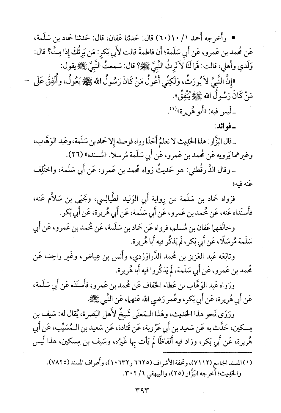 - قال البزار: هذا الحديث لا نعلم أحدًا رواه فوصله إلا حماد بن سلمة، وعبد الوَهَّاب، وغيرهما يرويه عن محمد بن عَمرو، عن أبي سلمة مُرسلًا. «مسنده» (٢٦).