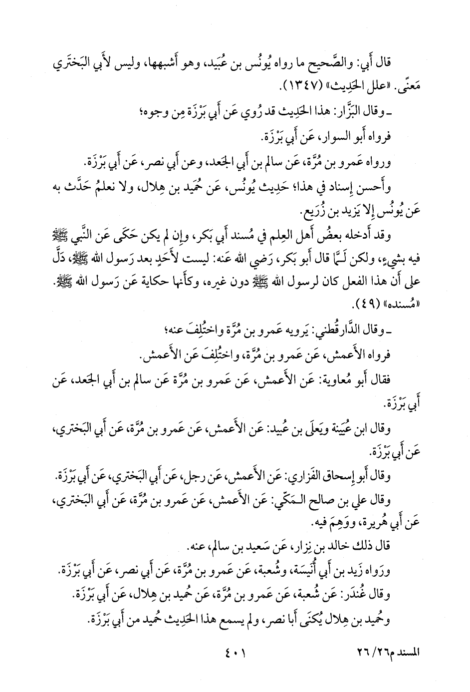 ورواه زيد بن أَبي أُنيسة، وشعبة، عن عَمرو بن مُرَّة، عن أبي نصر، عن أبي بَرزة.