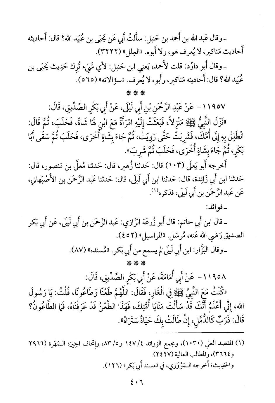 (¬١) المقصد العَلي (١٠٣٠)، ومَجمَع الزوائد ٤/ ١٤٧ و ٥/ ٨٣، وإتحاف الخِيرَة المَهَرة (٢٩٦٦ و ٣٦٦٤)، والمطالب العالية (٢٤٢٧).