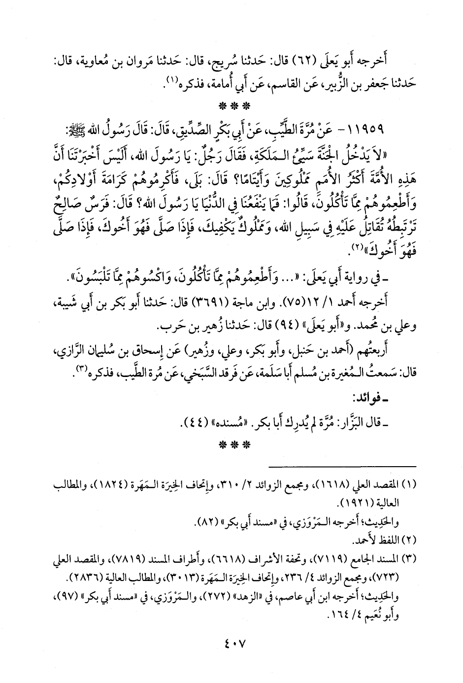 (¬٢) المسند الجامع (٧١١٩)، وتحفة الأشراف (٦٦١٨)، وأطراف المسند (٧٨١٩)، والمقصد العَلي (٧٢٣)، ومَجمَع الزوائد ٤/ ٢٣٦، وإتحاف الخِيرَة المَهَرة (٣٠١٣)، والمطالب العالية (٢٨٣٦).