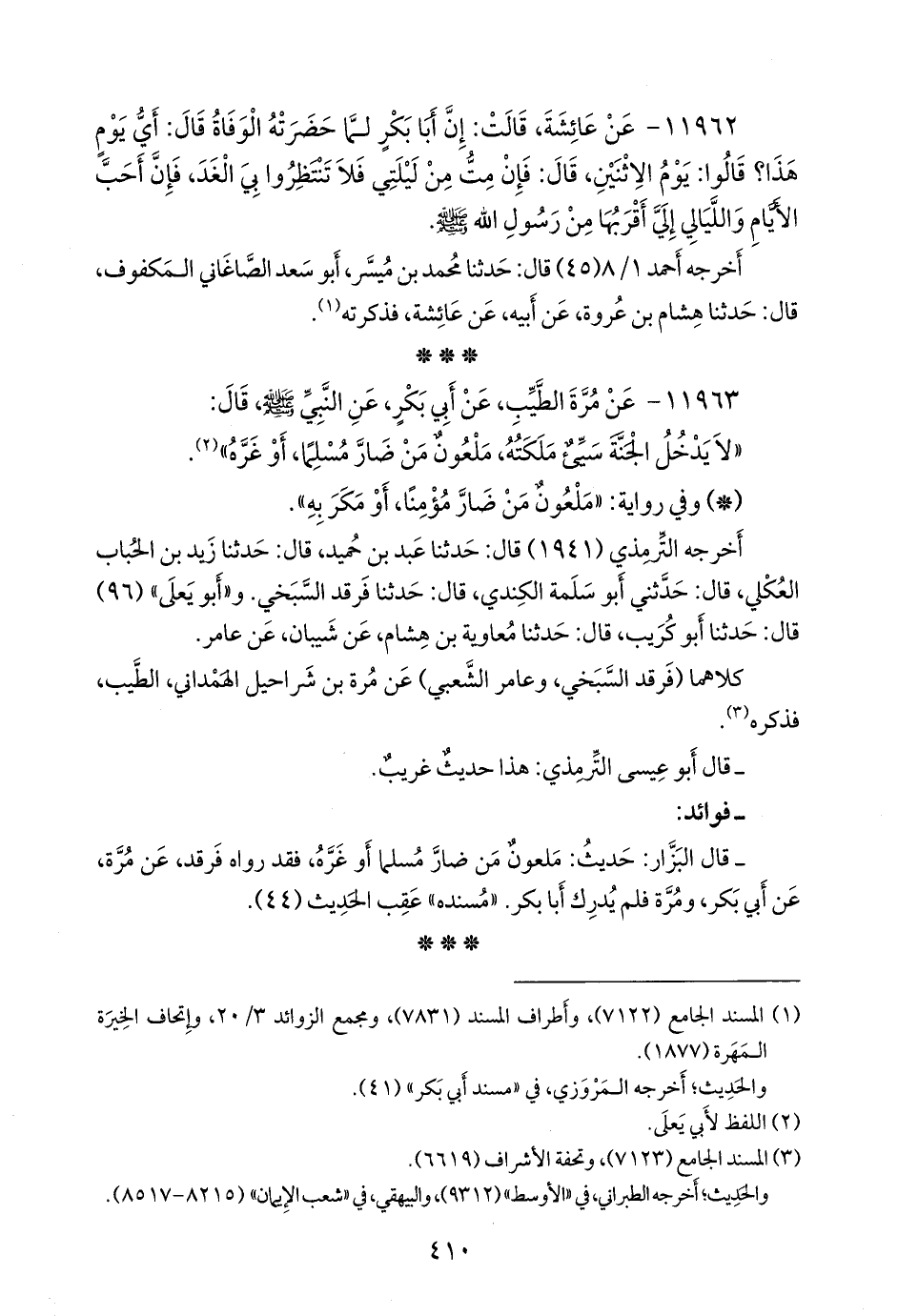 ١١٩٦٣ - عن مُرَّة الطيب، عن أَبي بكر، عن النبي صَلى الله عَليه وسَلم قال: