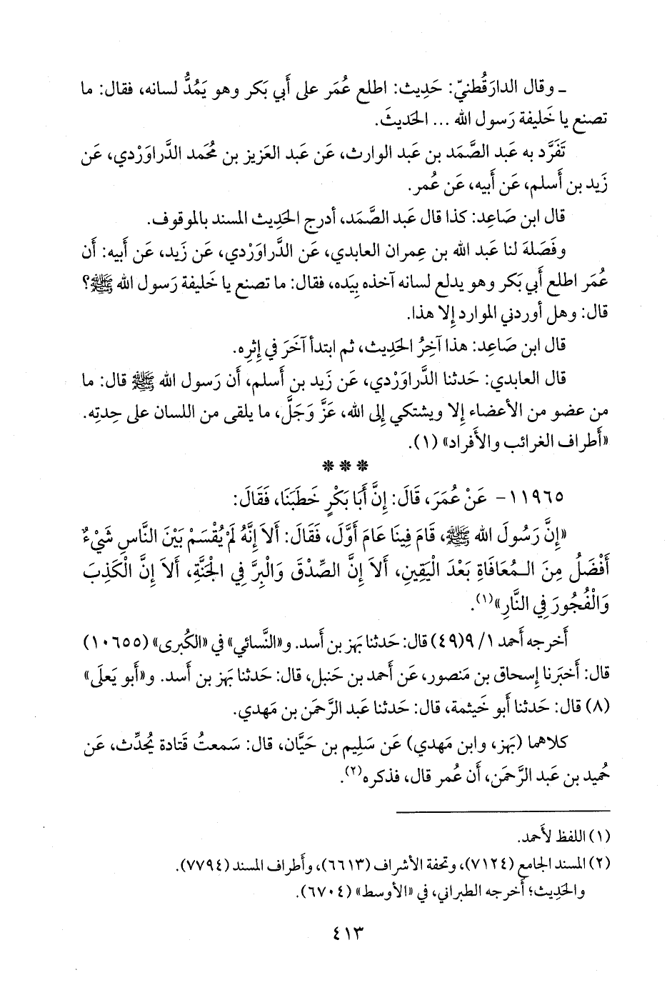 ١١٩٦٥ - عن عمر، قال: إن أبا بكر خطبنا، فقال: