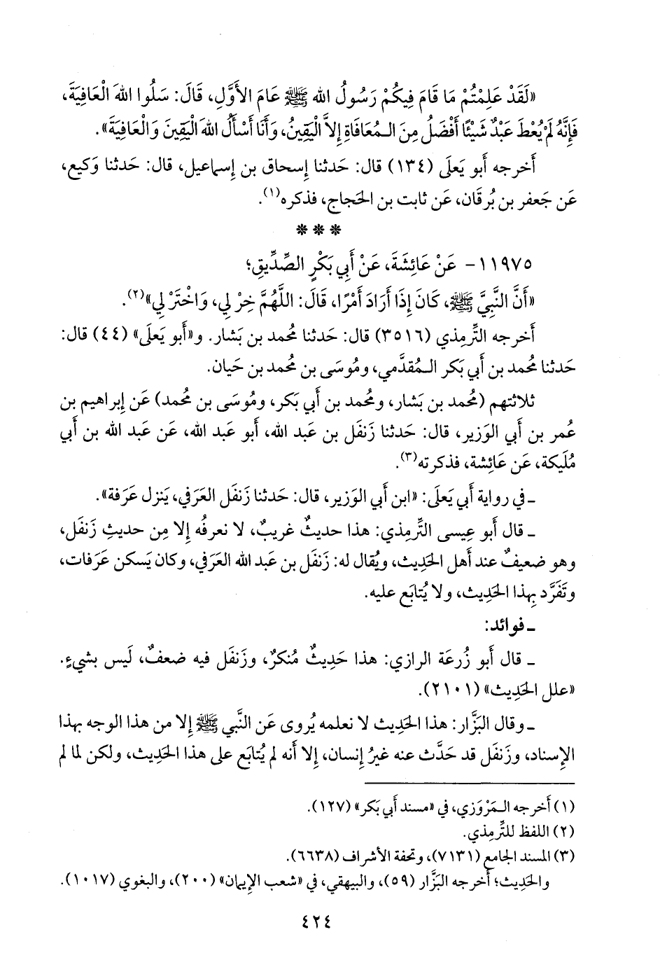 ١١٩٧٥ - عن عائشة، عن أَبي بكر الصِّدِّيق؛