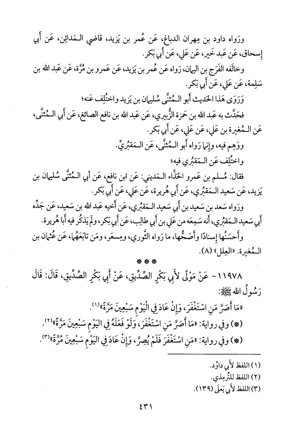 - وفي رواية: «من استغفر فلم يصر، وإن عاد في اليوم سبعين مرة» (¬٣).