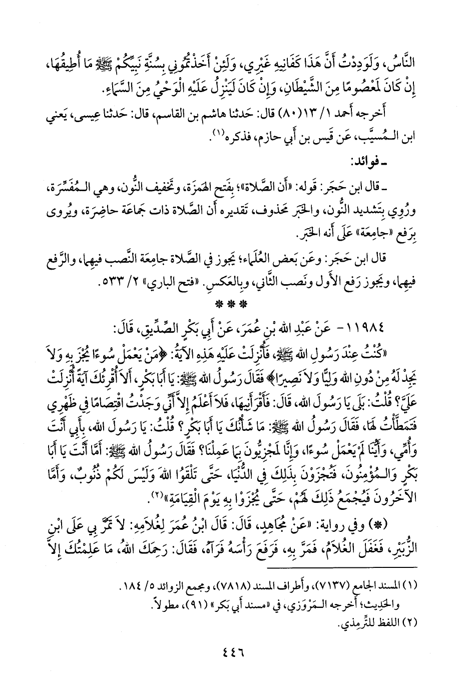١١٩٨٤ - عن عبد الله بن عمر، عن أَبي بكر الصِّدِّيق، قال: