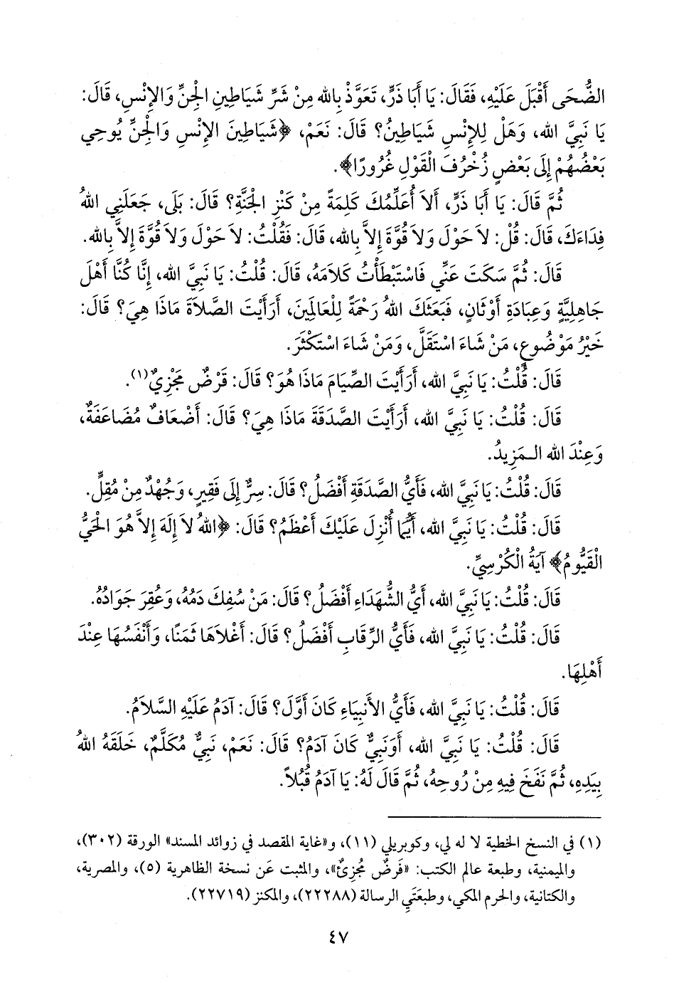 (¬١) المسند الجامع (٥٢٣٥)، وأطراف المسند (٧٦٥٠)، ومَجمَع الزوائد ١/ ١٥٩ و ٣/ ١١٥ و ١١٦، وإتحاف الخِيرَة المَهَرة (٣٣٧).