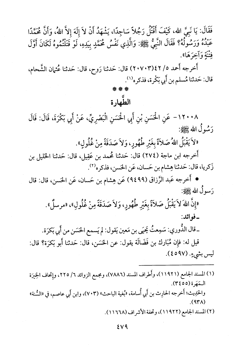 - قلنا: إِسناده ضعيفٌ؛ قال عباس الدُّوري: سمعت يحيى بن مَعين يقول: لم يسمع الحسن من أَبي بَكْرة.