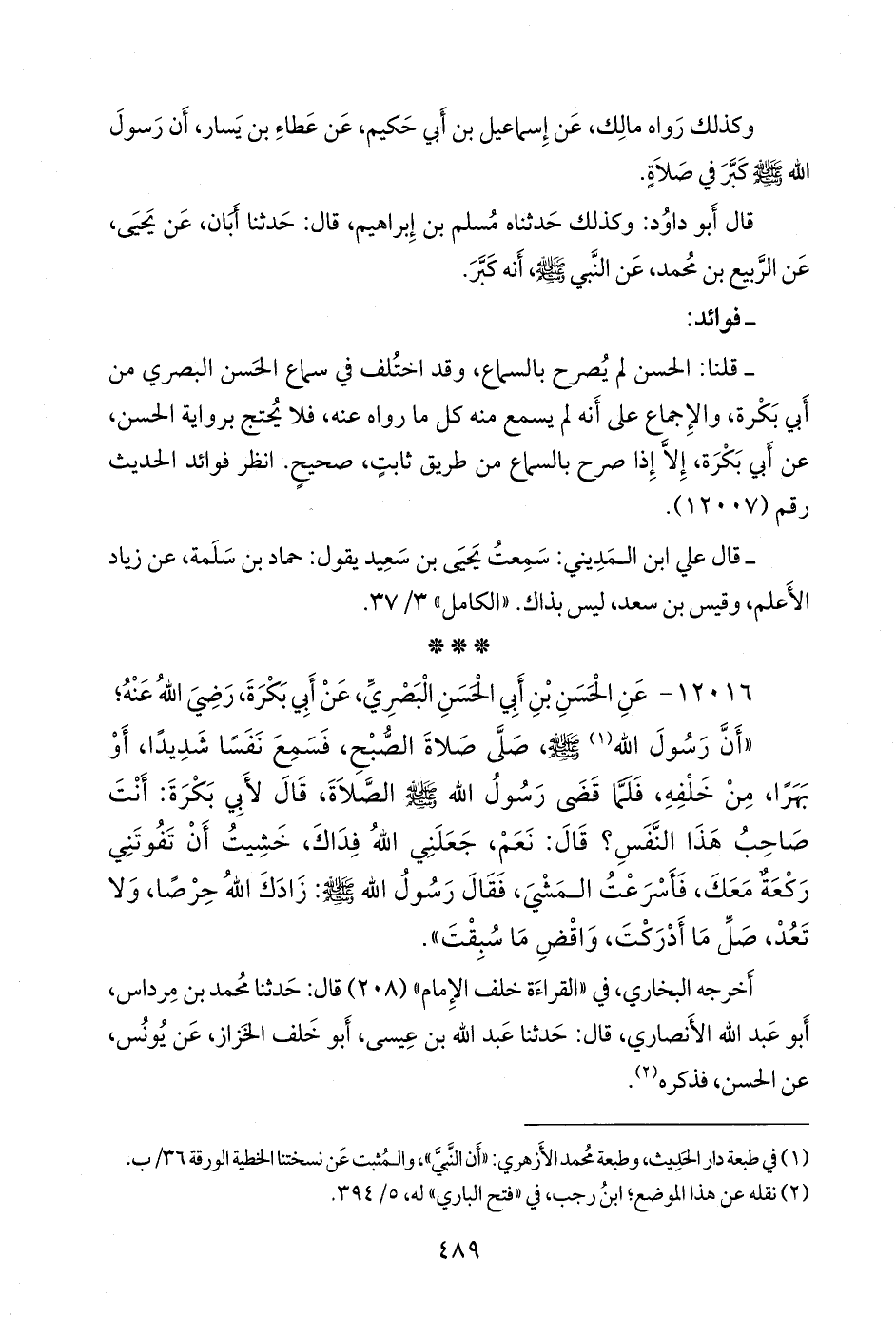 ١٢٠١٦ - عن الحسن بن أبي الحسن البصري، عن أَبي بَكْرة، رضي الله عنه؛
