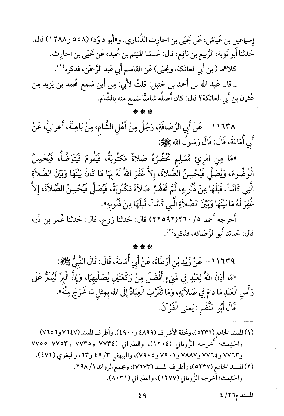 ١١٦٣٨ - عن أبي الرُّصَافة, رجل من أهل الشام, من باهلة, أعرابي, عن أَبي أُمامة, قال: قال رسول الله صَلى الله عَليه وسَلم: