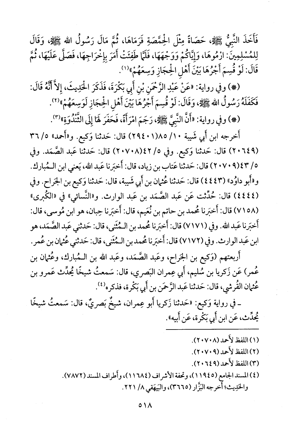 - في رواية وكيع: «حدثنا زكريا أَبو عمران، شيخ بصري، قال: سمعت شيخا يحدث، عن ابن أَبي بَكْرة، عن أبيه»