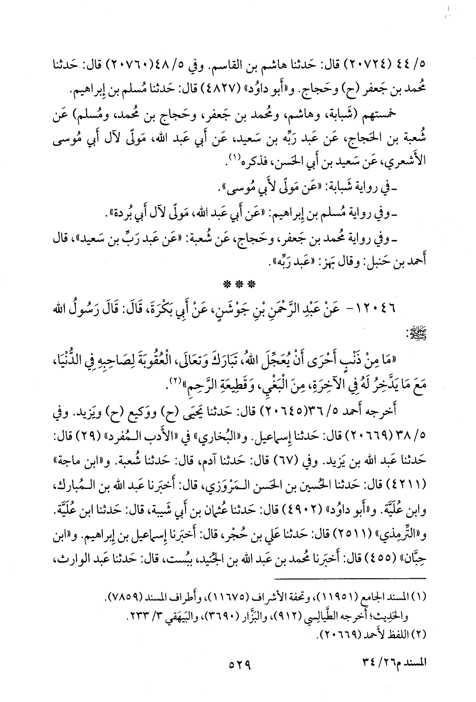 (¬٢) المسند الجامع (١١٩٥٢)، وتحفة الأشراف (١١٦٩٣)، وأطراف المسند (٧٨٧٥)، وإتحاف الخِيرَة المَهَرة (٥٠٥٨).