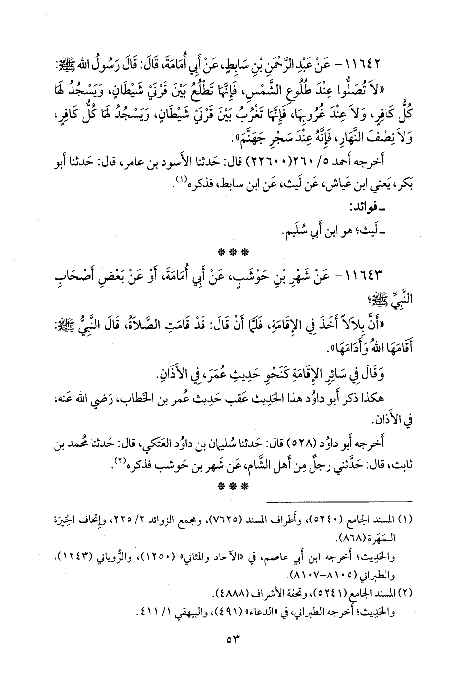 (¬١) المسند الجامع (٥٢٤٠)، وأطراف المسند (٧٦٢٥)، ومَجمَع الزوائد ٢/ ٢٢٥، وإتحاف الخِيرَة المَهَرة (٨٦٨).
