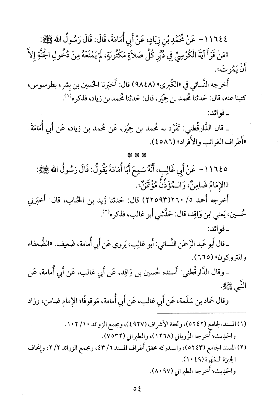 - وقال الدارقُطني: أسنده حسين بن واقد، عن أبي غالب، عن أَبي أُمامة، عن النبي صَلى الله عَليه وسَلم.