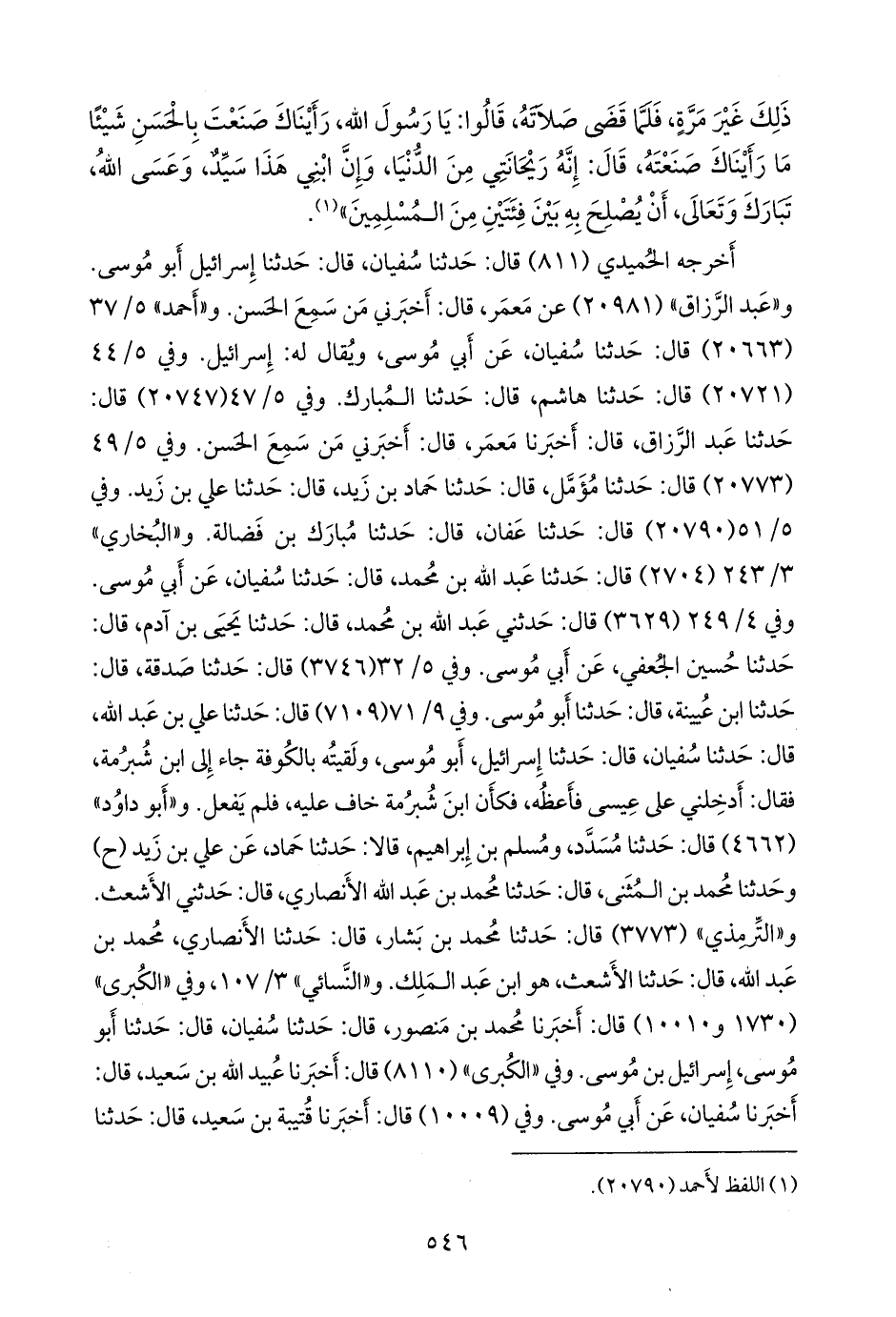 و «التِّرمِذي» (٣٧٧٣) قال: حدثنا محمد بن بشار، قال: حدثنا الأَنصاري، محمد بن عبد الله، قال: حدثنا الأشعث، هو ابن عبد الملك. و «النَّسَائي» ٣/ ١٠٧، وفي «الكبرى» (١٧٣٠ و ١٠٠١٠) قال: أخبرنا محمد بن منصور، قال: حدثنا سفيان، قال: حدثنا أَبو موسى، إسرائيل بن موسى. وفي «الكبرى» (٨١١٠) قال: أخبرنا عُبيد الله بن سعيد، قال: أخبرنا سفيان، عن أبي موسى. وفي (١٠٠٠٩) قال: أخبرنا قتيبة بن سعيد، قال: حدثنا